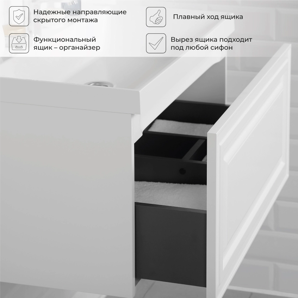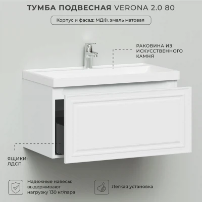 Тумба с раковиной Итана Verona 2.0 80 с выдвижным ящиком Эмаль Белый матовый
