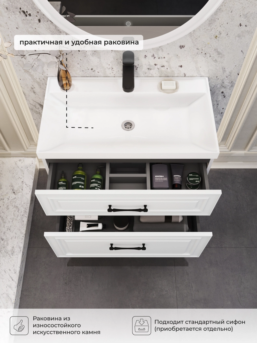 Тумба с раковиной Итана Verona 2.0 80 с выдвижными ящиками Бланж