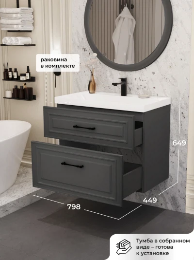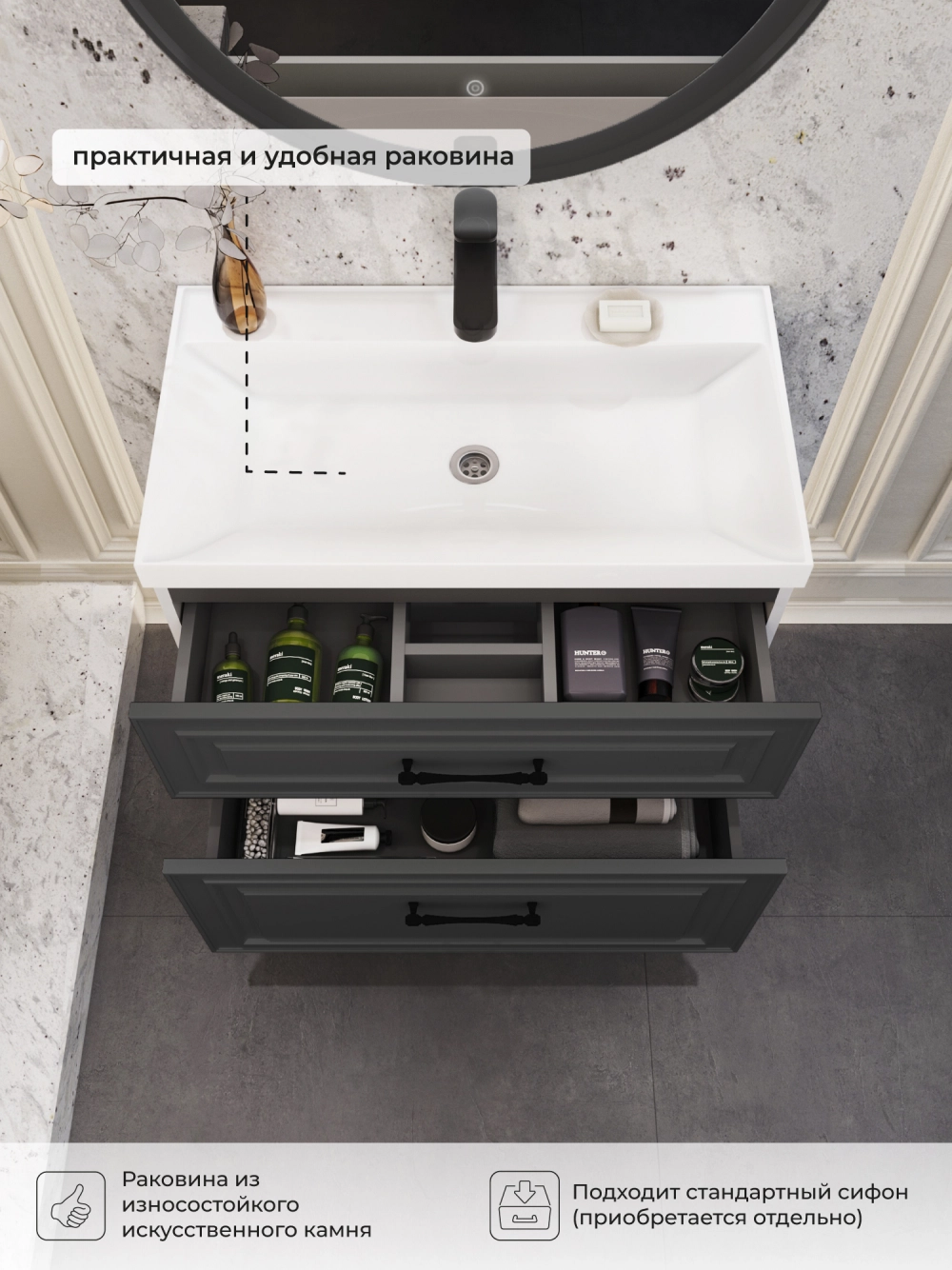 Тумба с раковиной Итана Verona 2.0 80 с выдвижными ящиками Графит