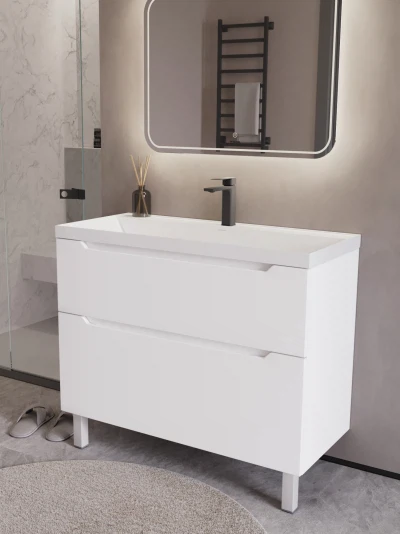 Тумба с раковиной напольная Итана Alara 100 с выдвижными ящиками Белый Глянец