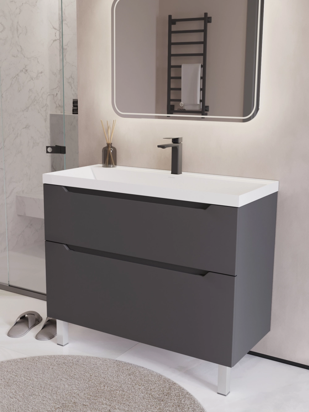 Тумба с раковиной напольная Итана Alara 100 с выдвижными ящиками Графит