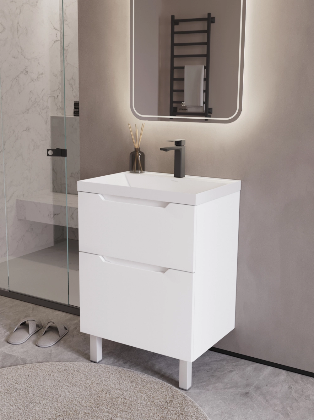 Тумба с раковиной напольная Итана Alara 60 с выдвижными ящиками Белый Глянец