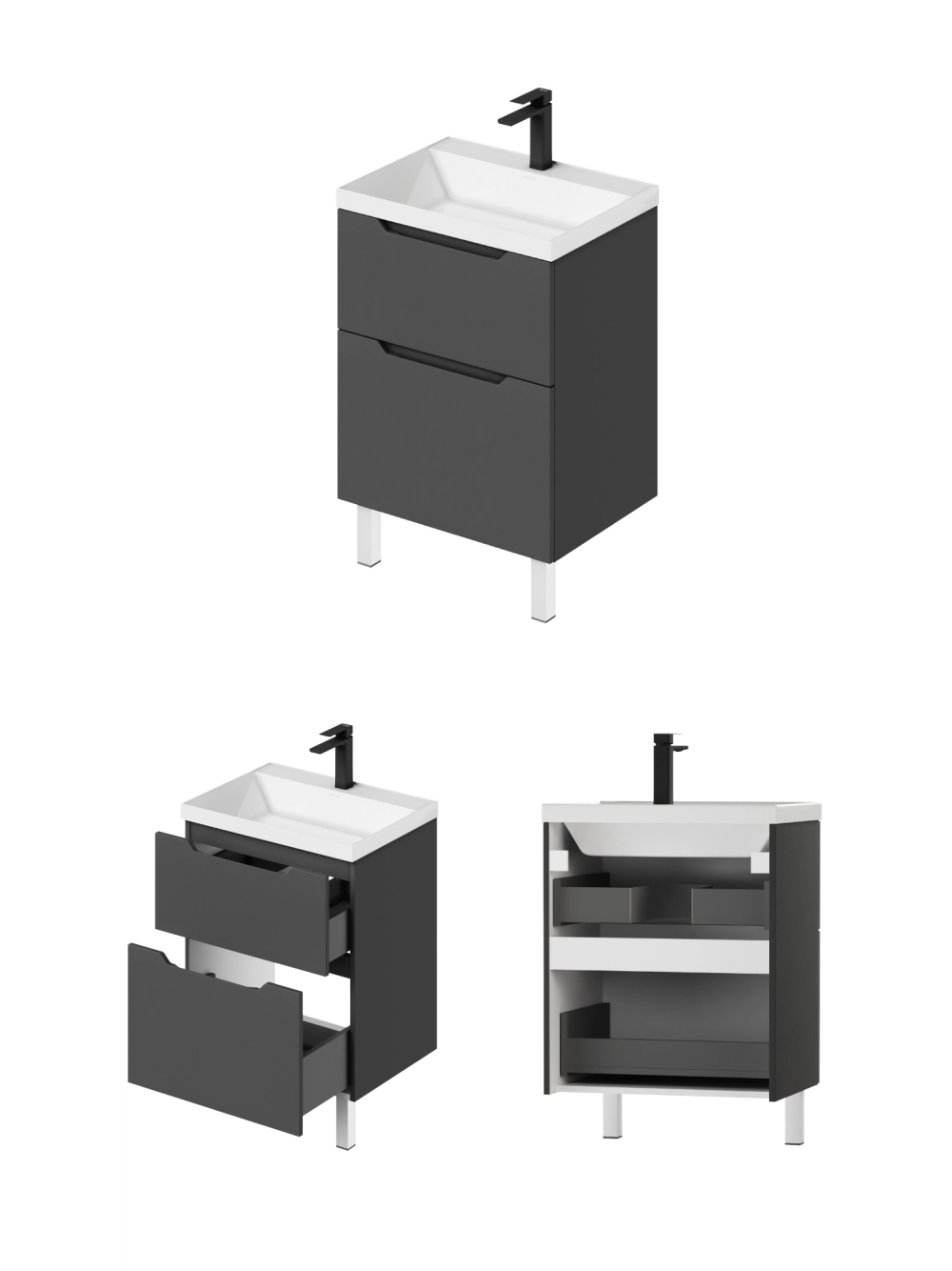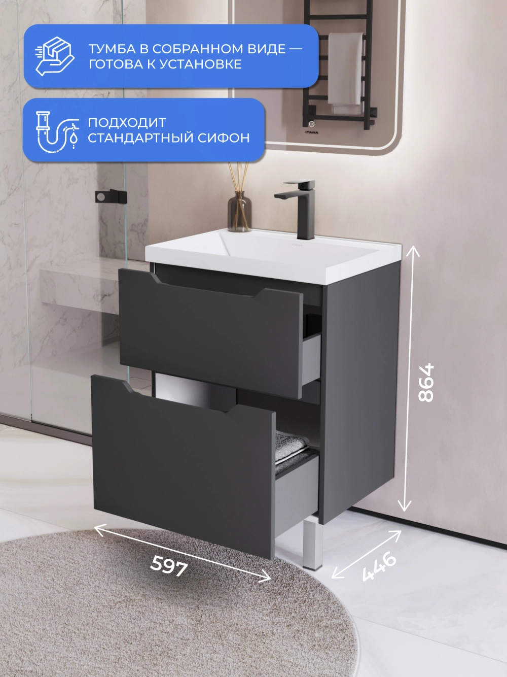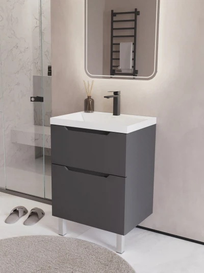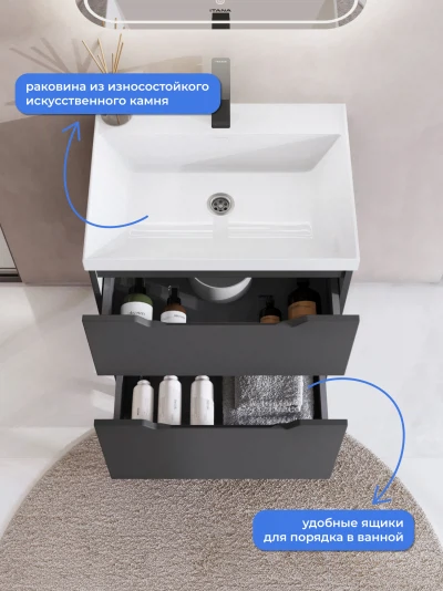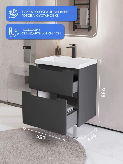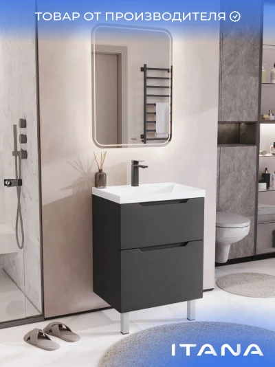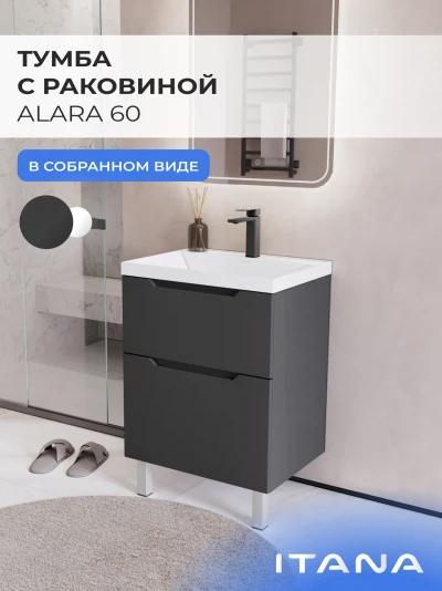 Тумба с раковиной напольная Итана Alara 60 с выдвижными ящиками Графит