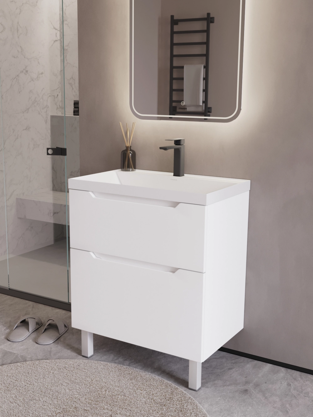 Тумба с раковиной напольная Итана Alara 70 с выдвижными ящиками Белый Глянец