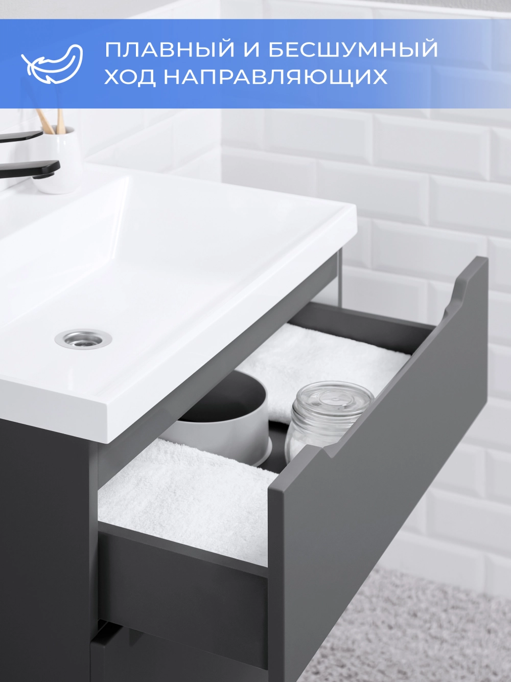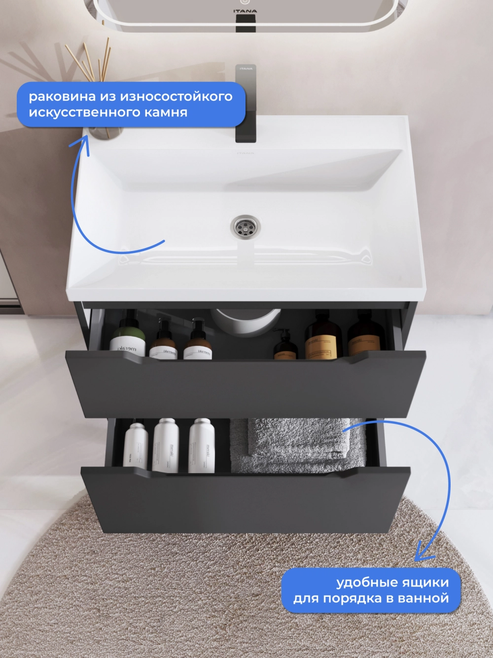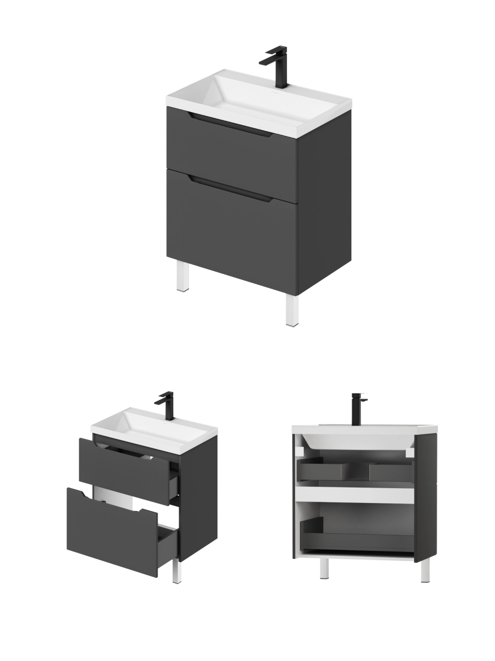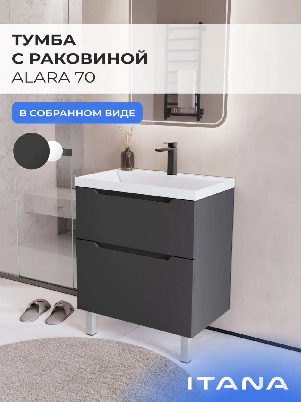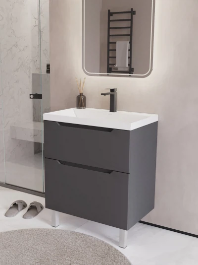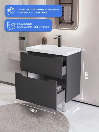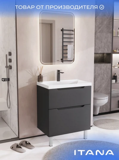 Тумба с раковиной напольная Итана Alara 70 с выдвижными ящиками Графит