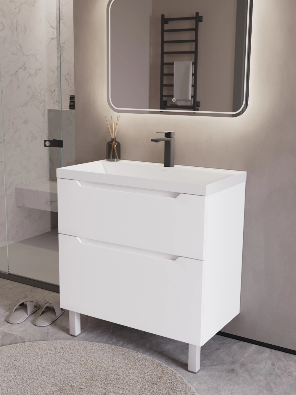 Тумба с раковиной напольная Итана Alara 80 с выдвижными ящиками Белый Глянец