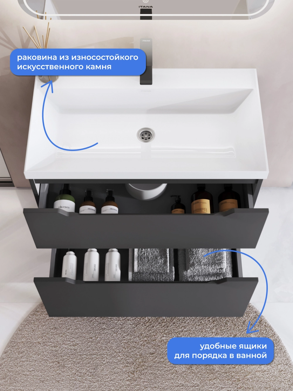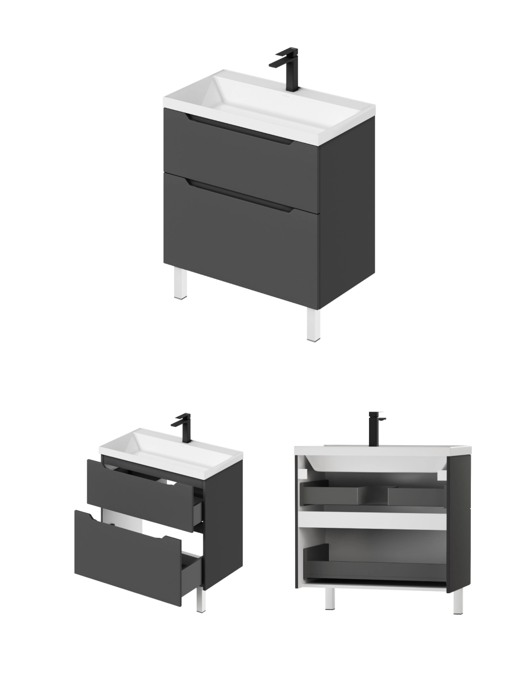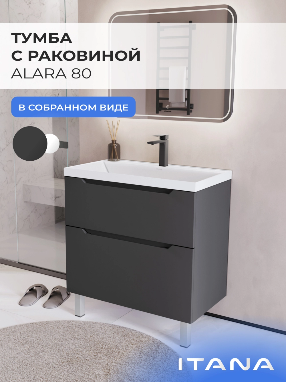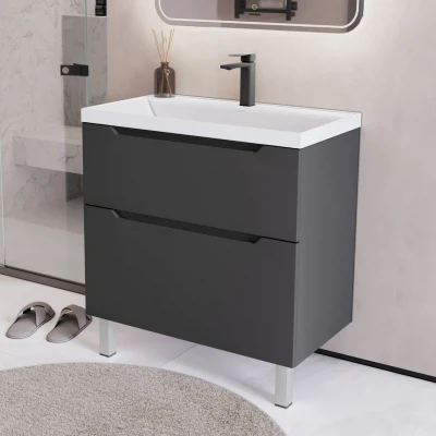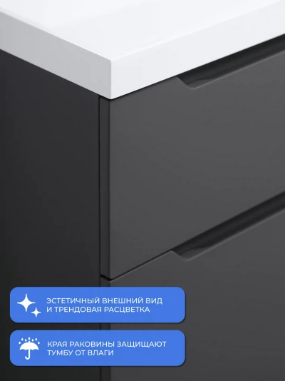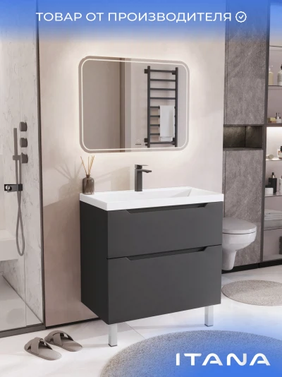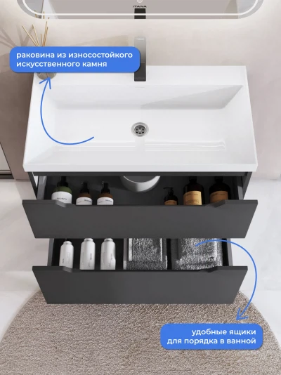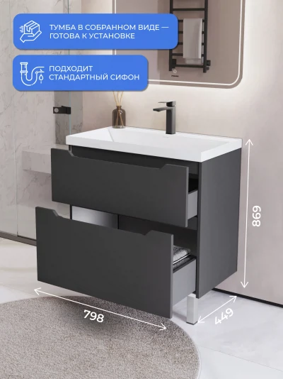 Тумба с раковиной напольная Итана Alara 80 с выдвижными ящиками Графит