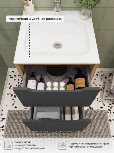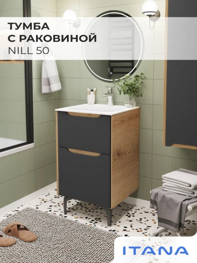 Тумба с раковиной напольная Итана Nill 50 с выдвижными ящиками Графит