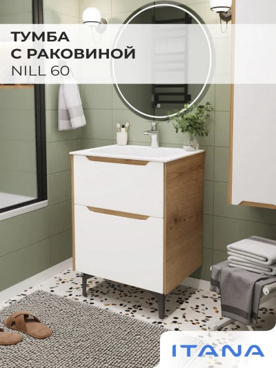 Тумба с раковиной напольная Итана Nill 60 с выдвижными ящиками Белый глянец