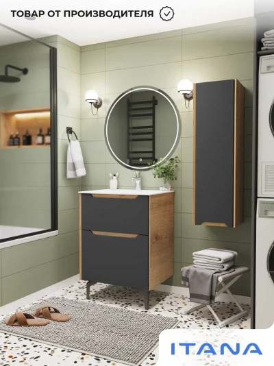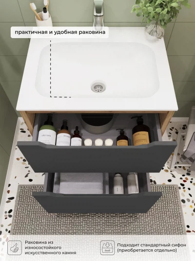 Тумба с раковиной напольная Итана Nill 60 с выдвижными ящиками Графит