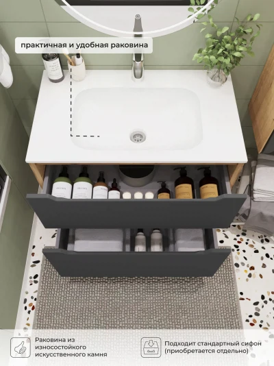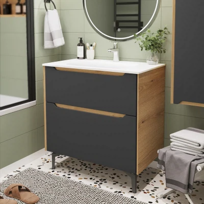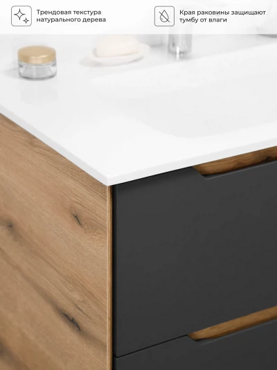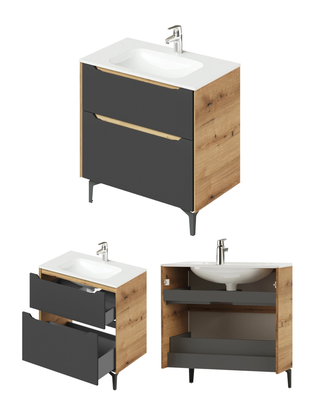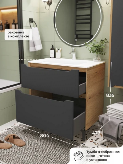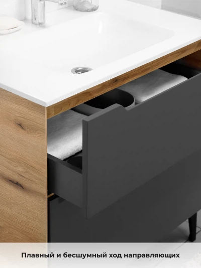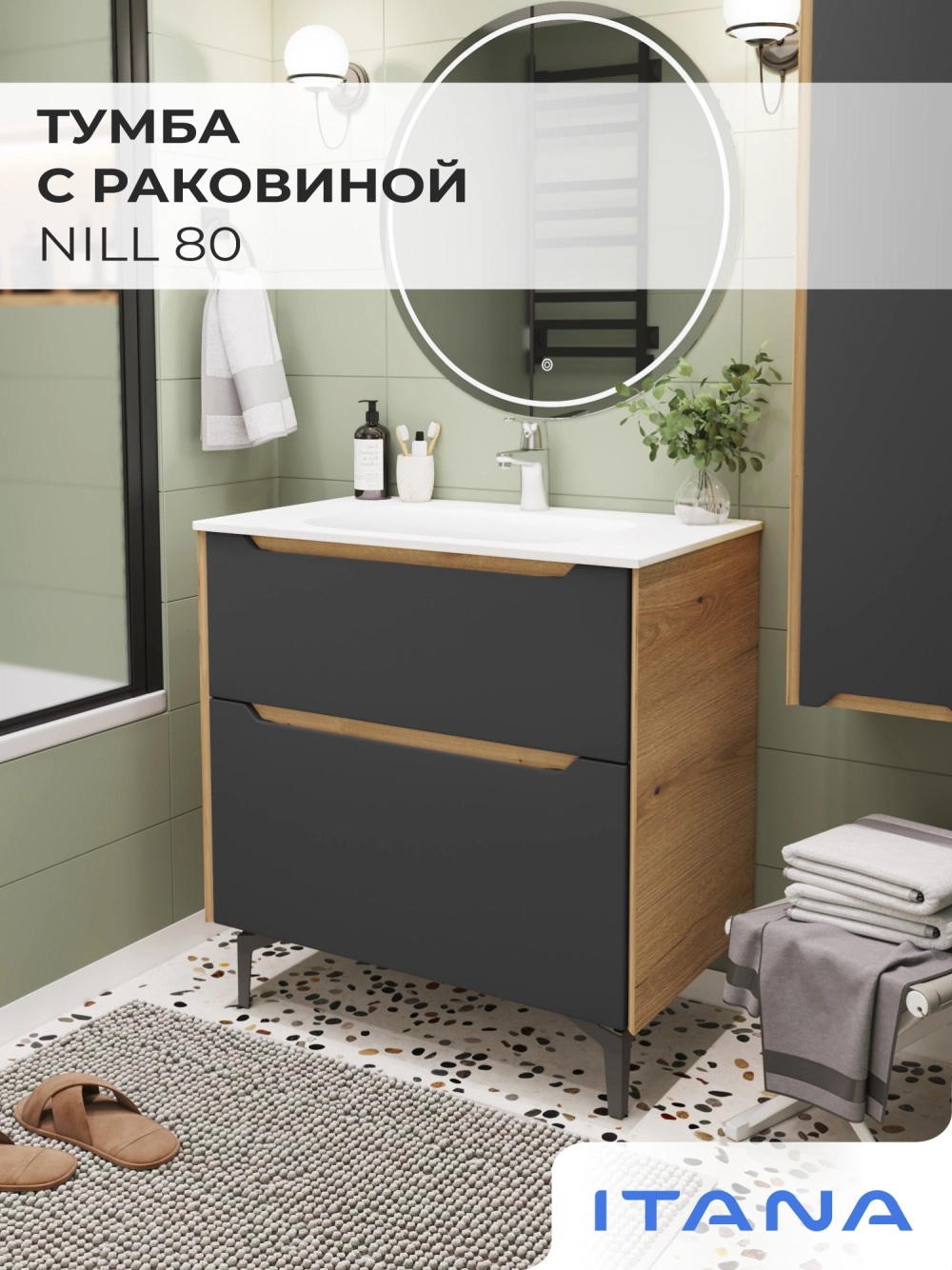 Тумба с раковиной напольная Итана Nill 80 с выдвижными ящиками Графит