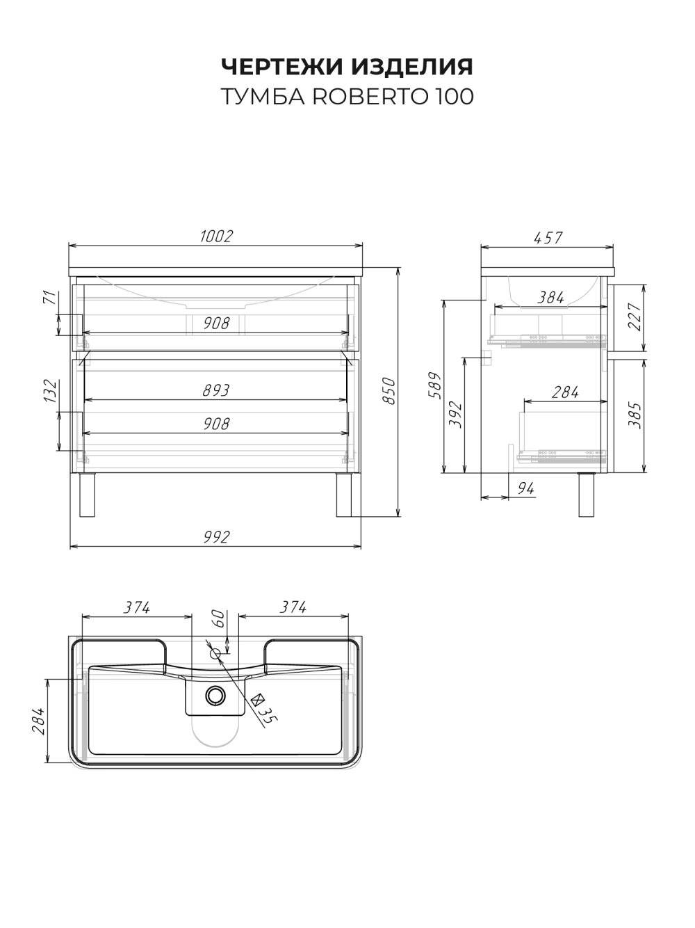 Тумба с раковиной напольная Итана Roberto 100 с выдвижными ящиками Эмаль Белый глянец