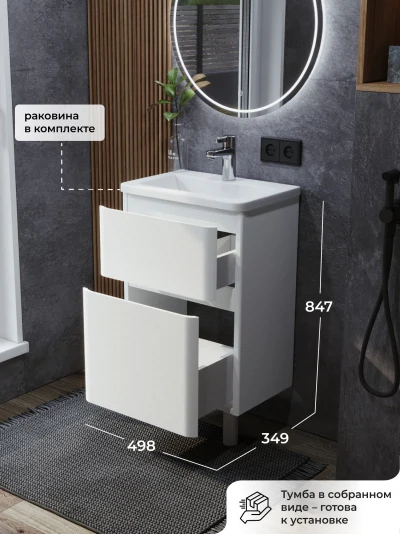 Тумба с раковиной напольная Итана Roberto 50 с выдвижными ящиками Белый глянец