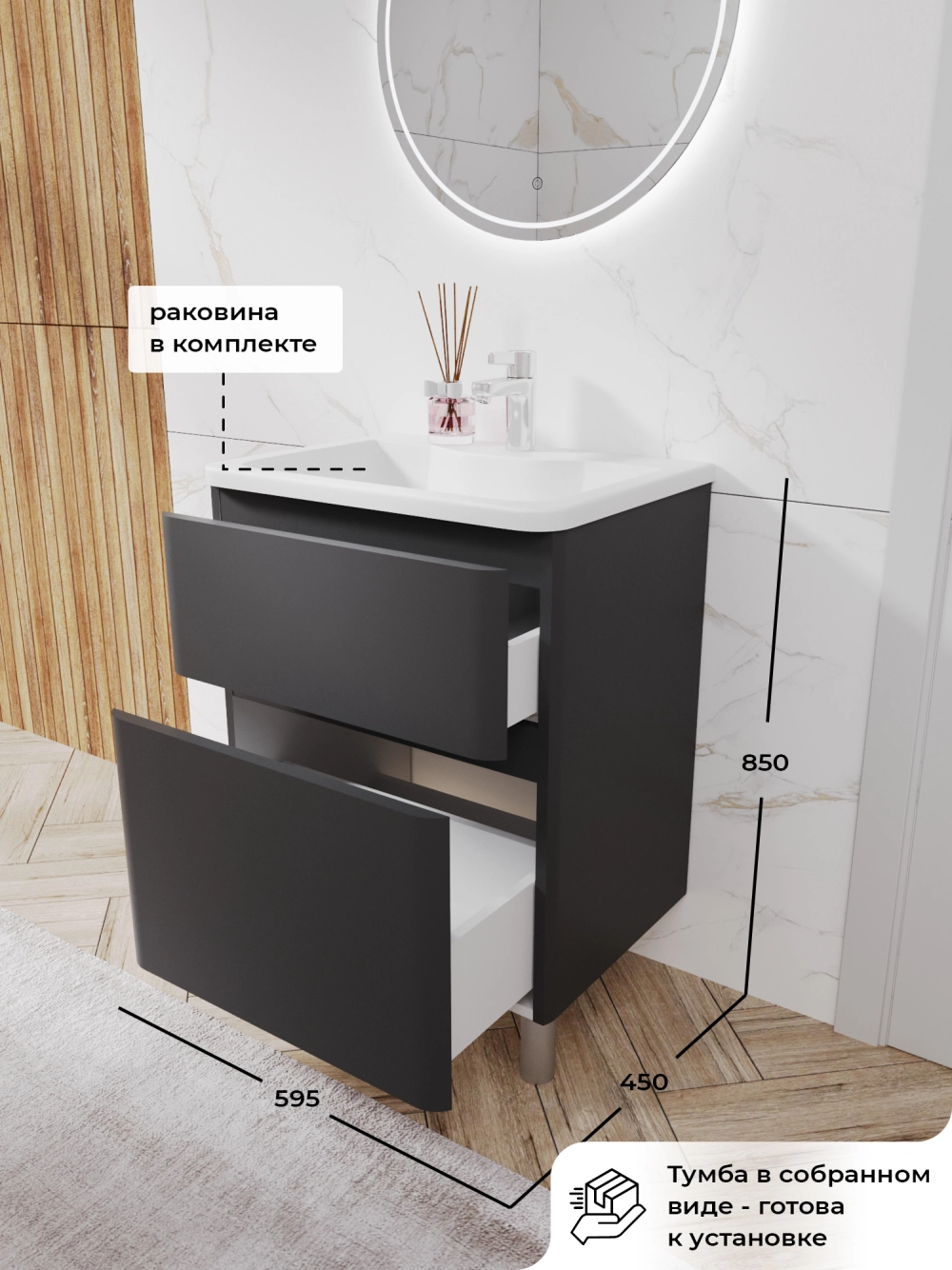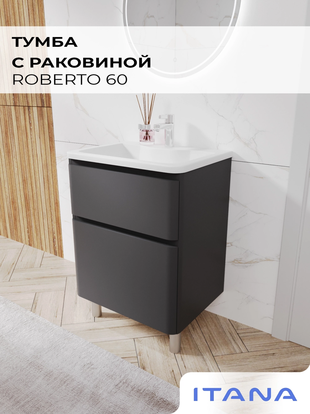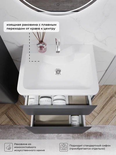 Тумба с раковиной напольная Итана Roberto 60 с выдвижными ящиками Графит