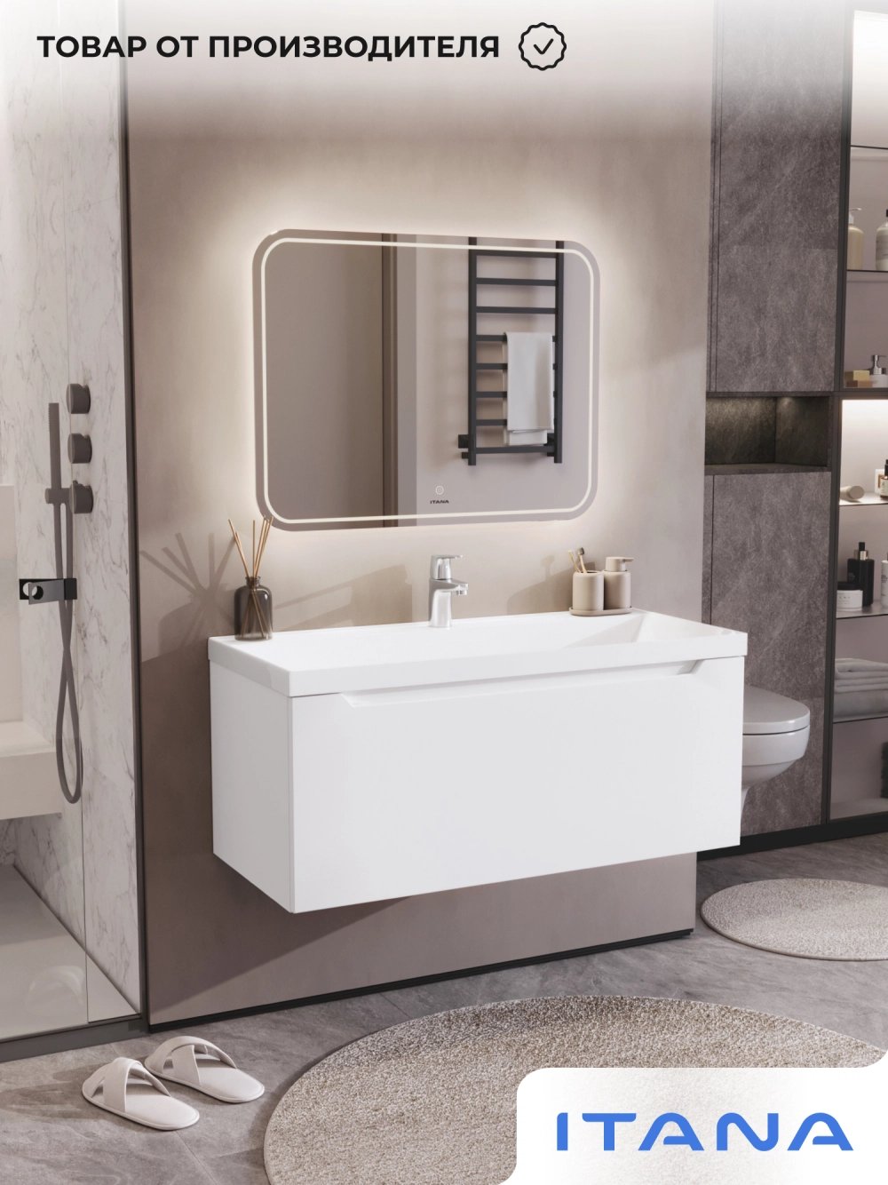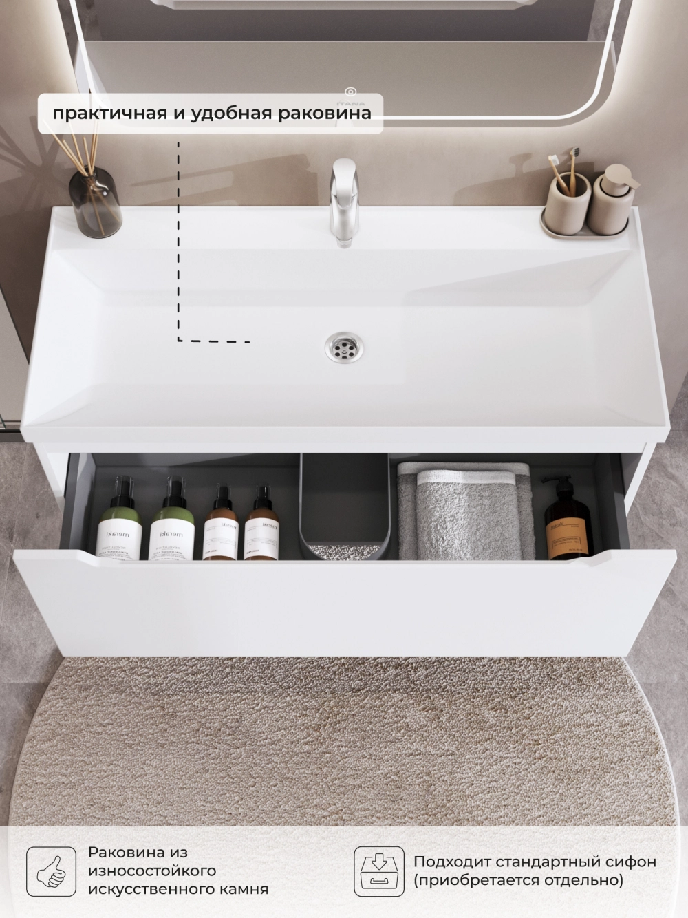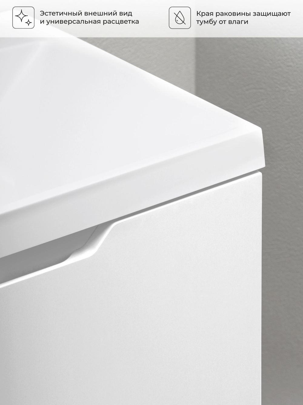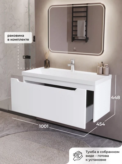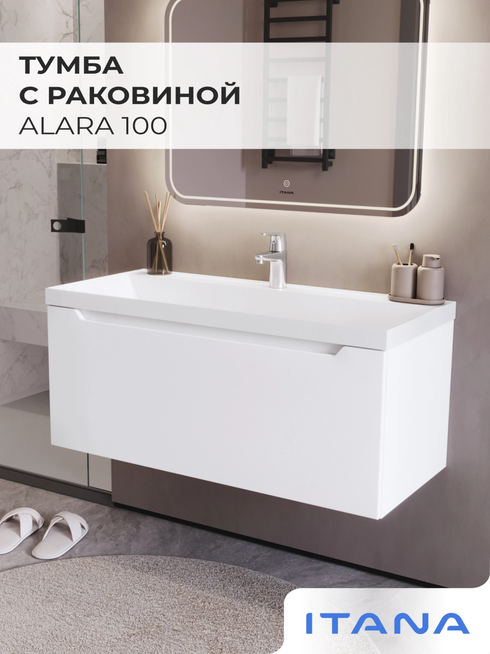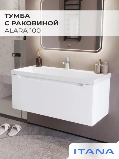 Тумба с раковиной подвесная Итана Alara 100 с выдвижным ящиком Белый глянец