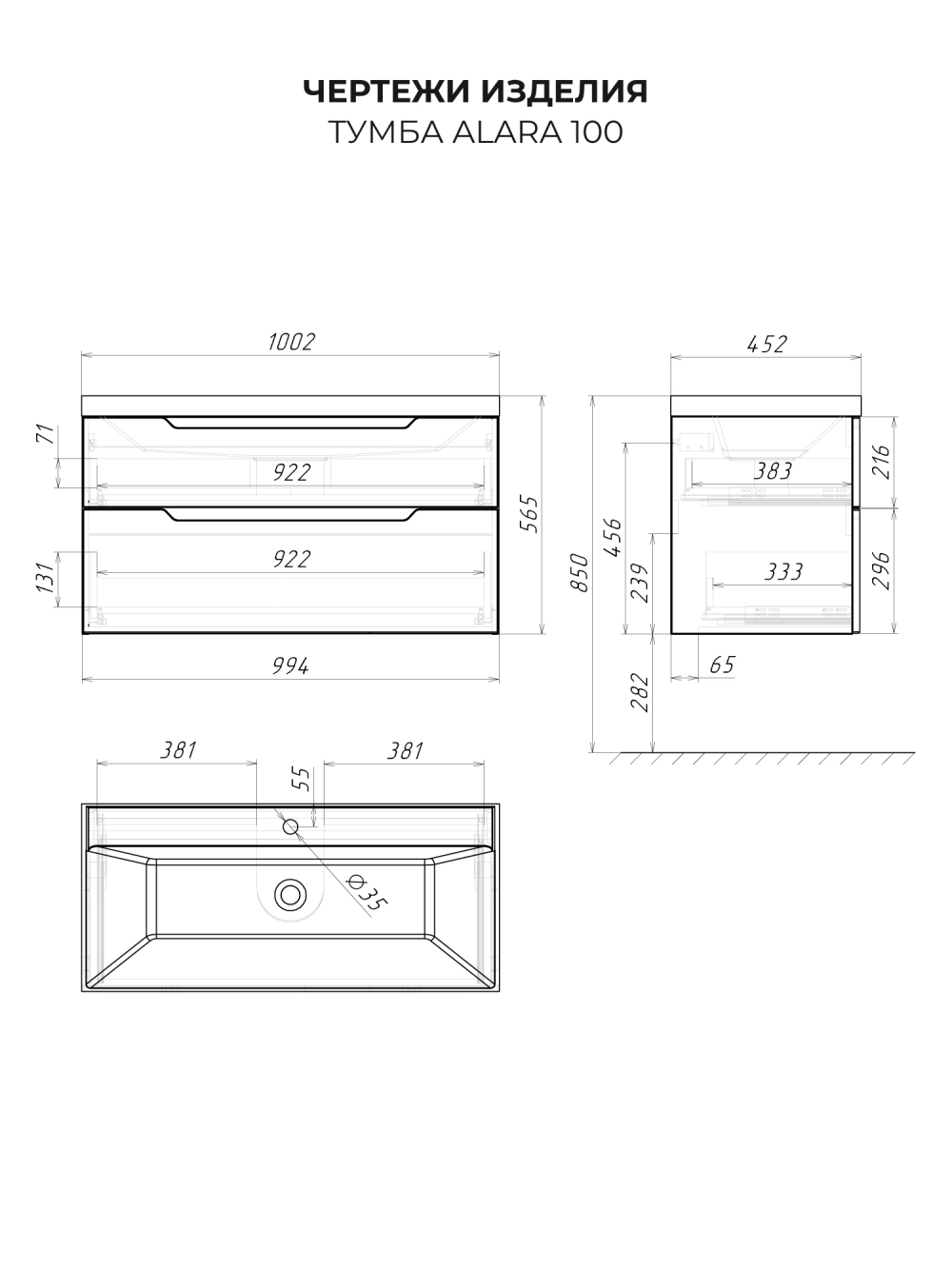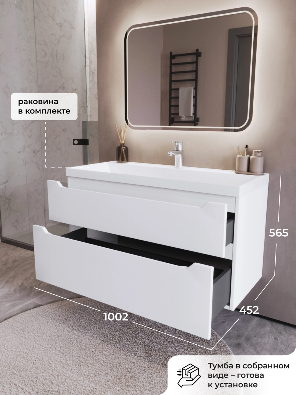 Тумба с раковиной в ванную Итана из коллекции Alara. Тумба в ванную отличается элегантным дизайном и качественным исполнением, прекрасно сочетая функциональность и эстетическую привлекательность. Размеры подвесной тумбы с раковиной 1002*452*565 - идеальный выбор для ванной комнаты или туалета. Подвесная конструкция тумбы с раковиной позволяет сэкономить место на полу и визуально расширяет пространство. Тумба с раковиной в ванную подвесная выполнена из МФД, что гарантирует долговечность эксплуатации и износостойкость. Качественная фурнитура с доводчиками обеспечивает легкое открывание и плавное закрывание ящиков. Тумба с раковиной с двумя ящиками, где можно рационально распределить и разместить все необходимые вещи для ванной комнаты. Для точного выбора тумбы рекомендуем обратиться к схеме замеров, которая находится на фото в карточке товара. Размеры изделия могут отличаться +/-1 см в связи со спецификой производства. Подвесная тумба с раковиной приходит в надежной упаковке и в собранном виде.