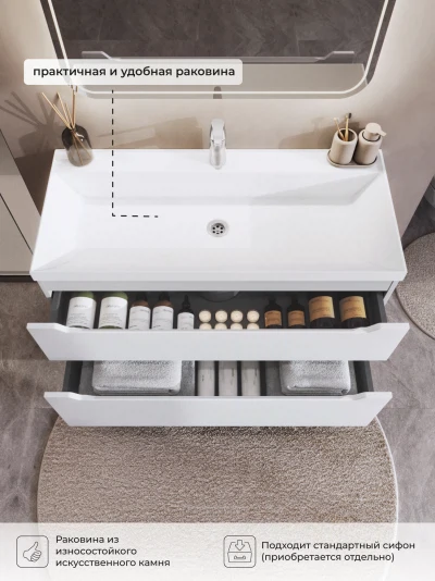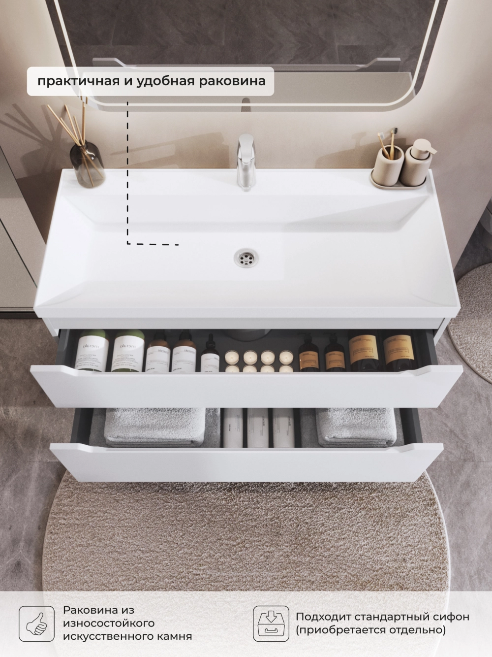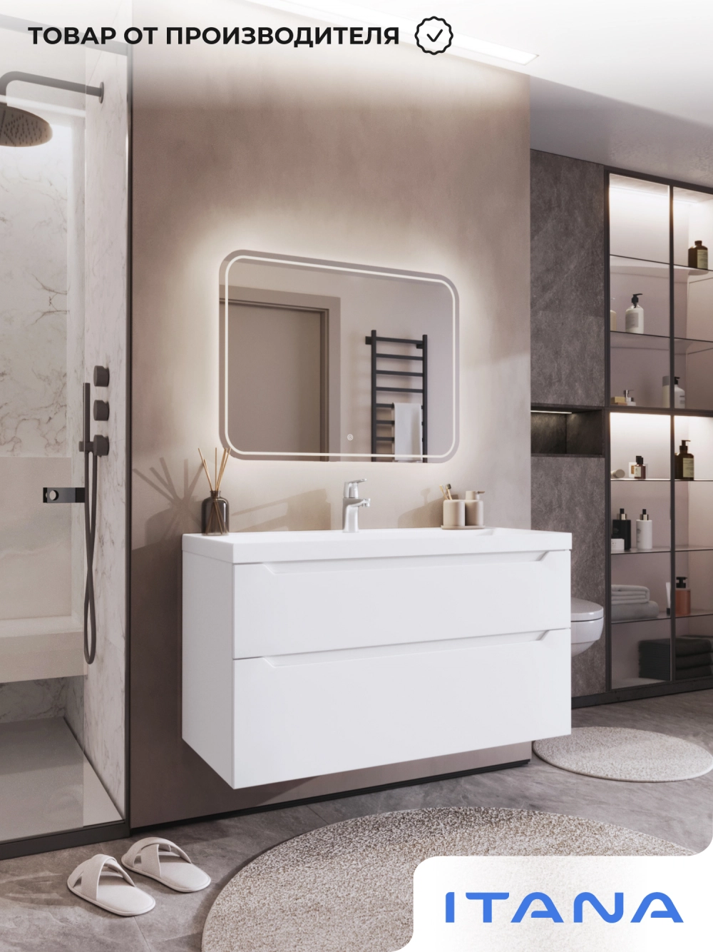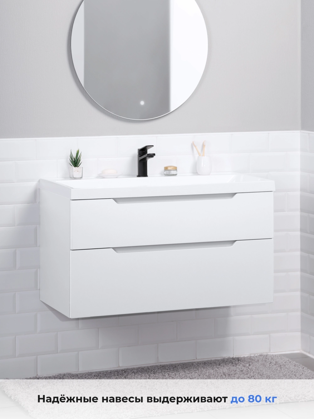 Тумба с раковиной подвесная Итана Alara 100 с выдвижными ящиками Белый глянец
