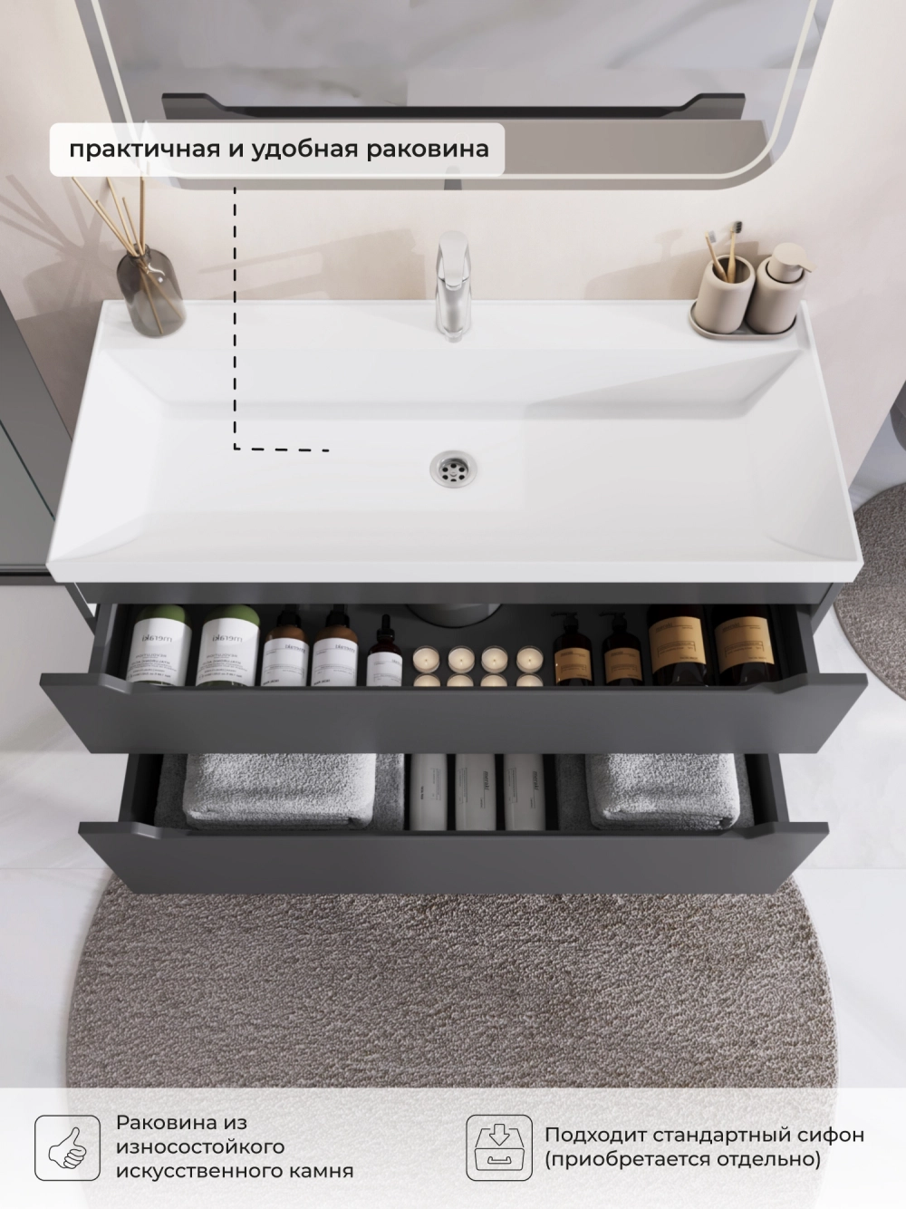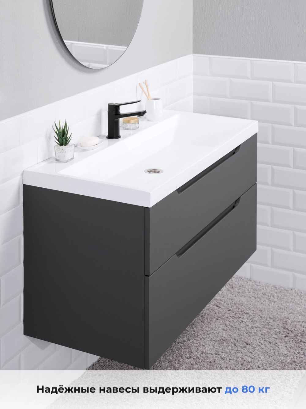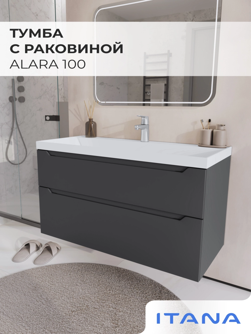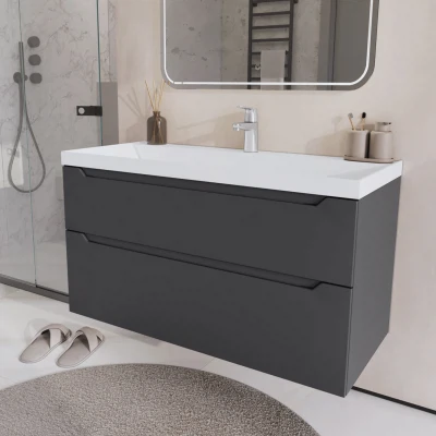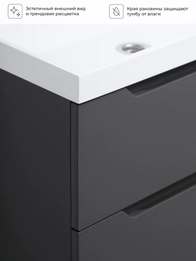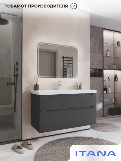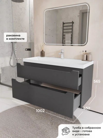 Тумба с раковиной подвесная Итана Alara 100 с выдвижными ящиками Графит