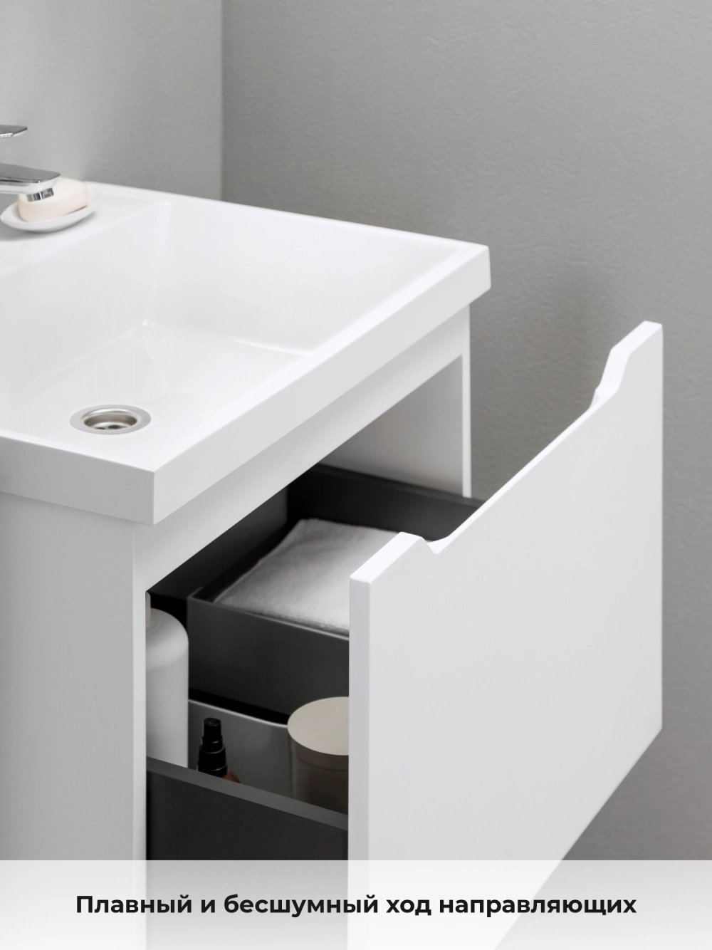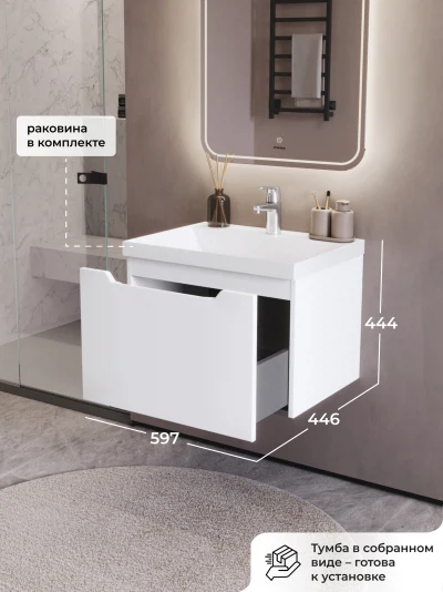 Тумба с раковиной подвесная Итана Alara 60 с выдвижным ящиком Белый глянец