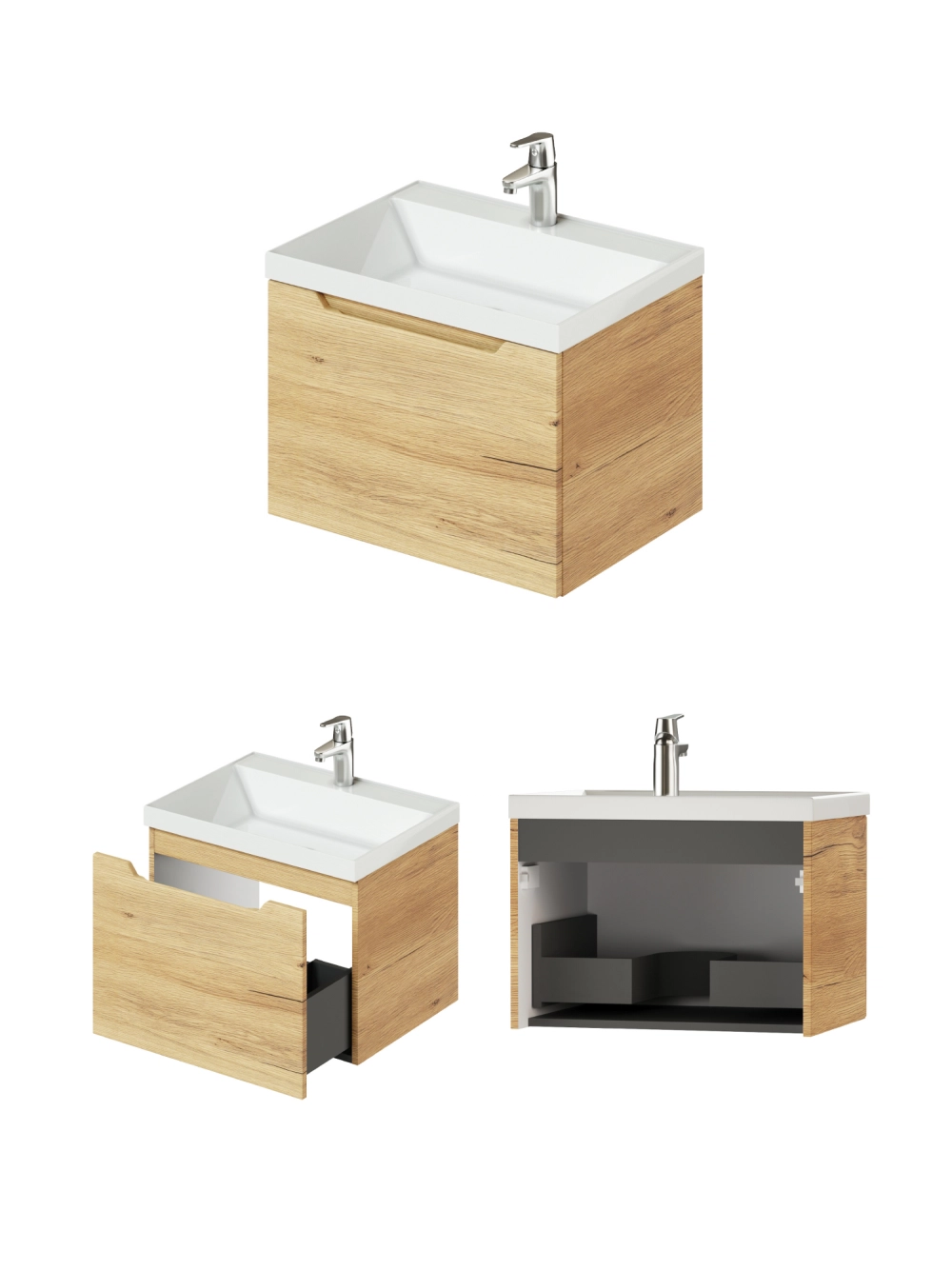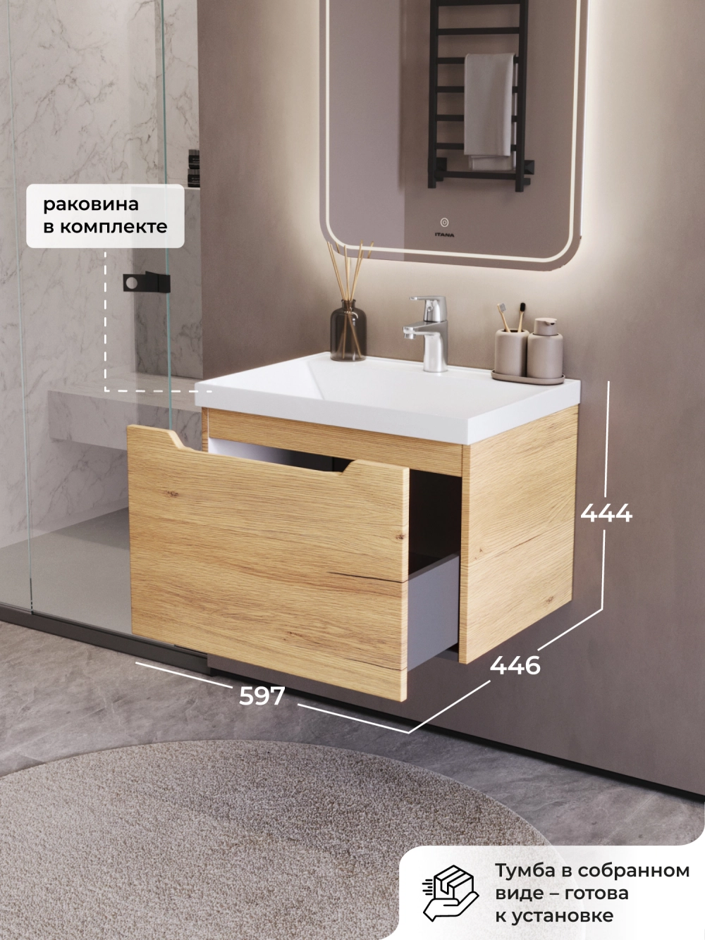 Тумба с раковиной подвесная Итана Alara 60 с выдвижным ящиком Дуб Мавелла Голд