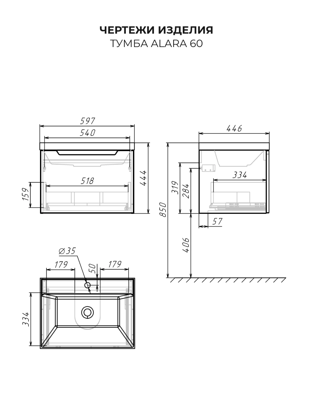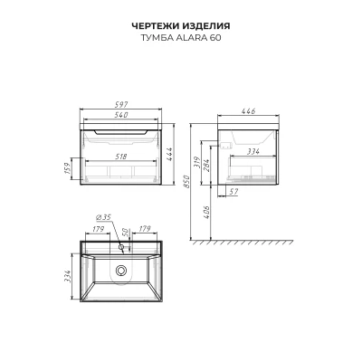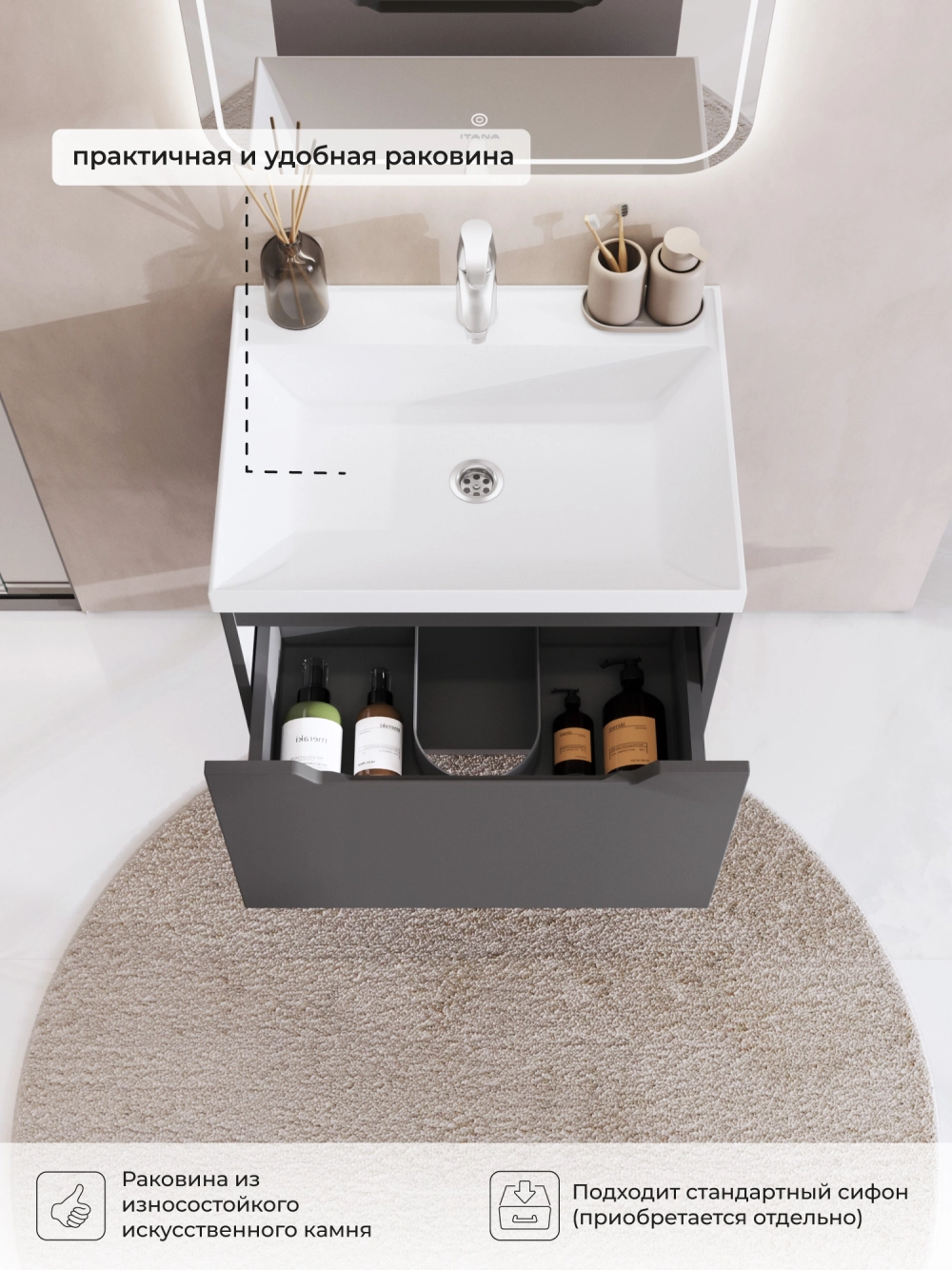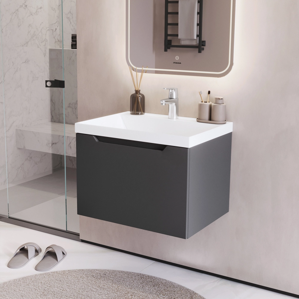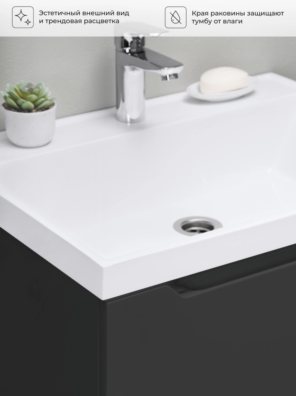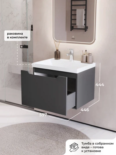 Тумба с раковиной подвесная Итана Alara 60 с выдвижным ящиком Графит