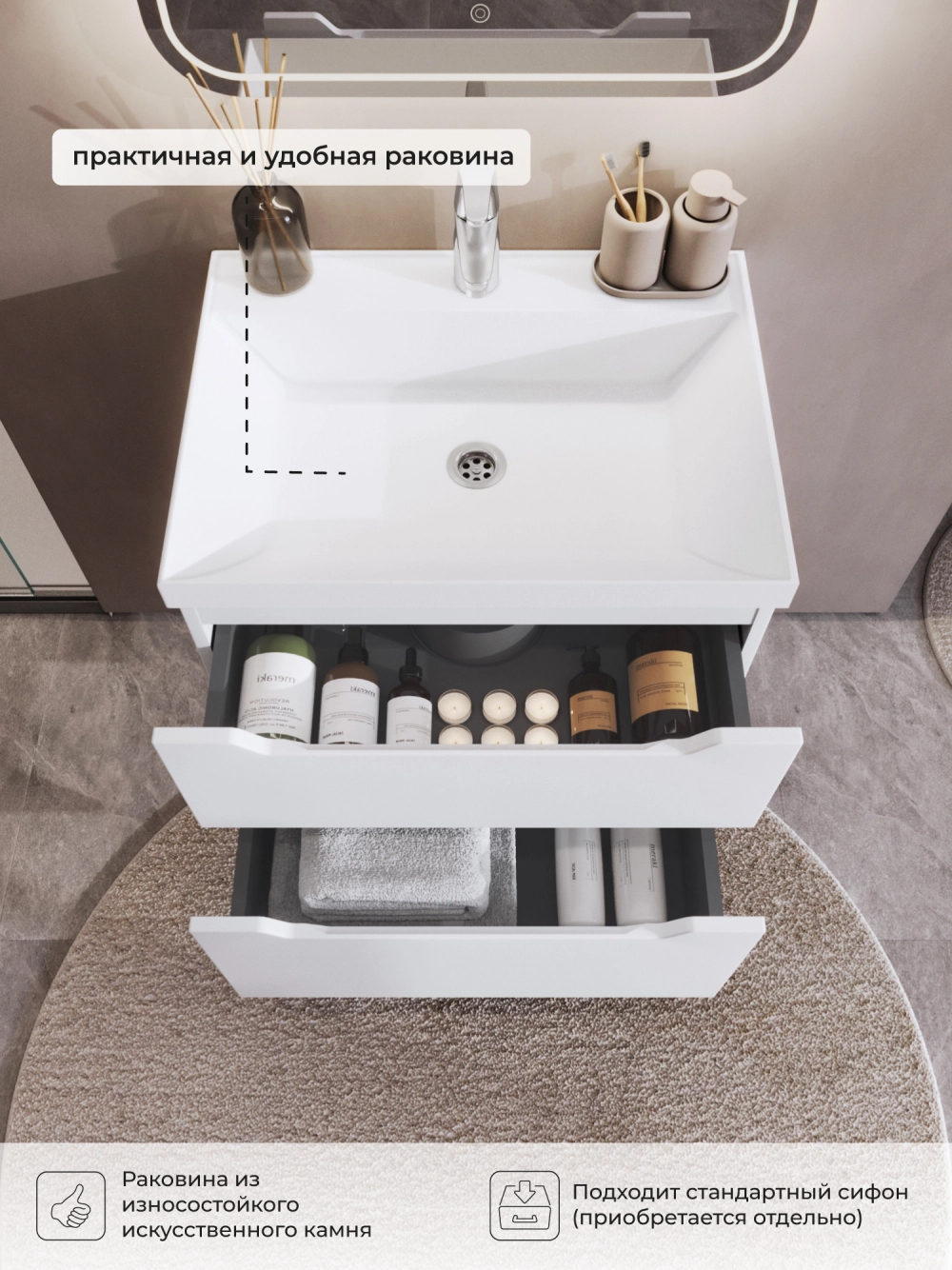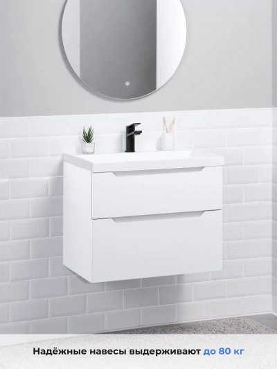 Тумба с раковиной подвесная Итана Alara 60 с выдвижными ящиками Белый глянец