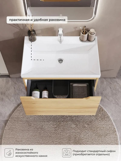 Тумба с раковиной подвесная Итана Alara 70 с выдвижным ящиком Дуб Мавелла Голд
