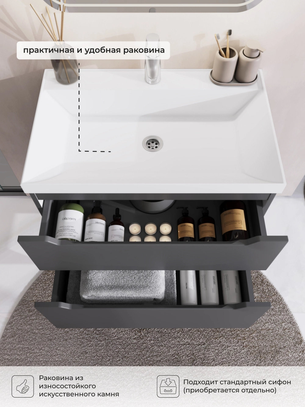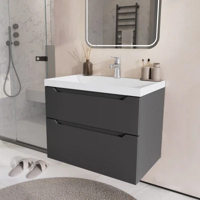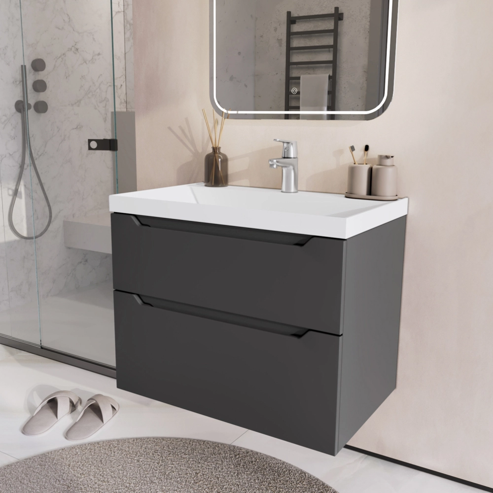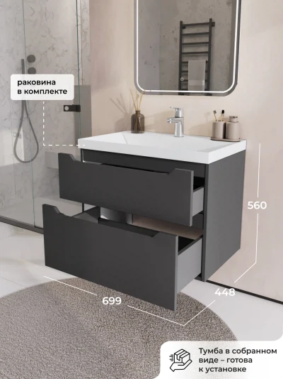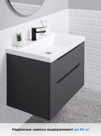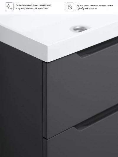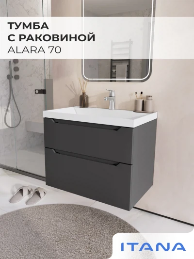 Тумба с раковиной подвесная Итана Alara 70 с выдвижными ящиками Графит