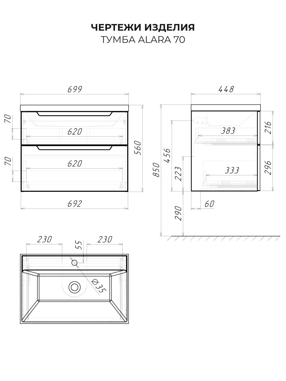 Тумба с раковиной в ванную Итана из коллекции Alara. Тумба в ванную отличается элегантным дизайном и качественным исполнением, прекрасно сочетая функциональность и эстетическую привлекательность. Размеры подвесной тумбы с раковиной 699*448*560 - идеальный выбор для ванной комнаты или туалета. Подвесная конструкция тумбы с раковиной позволяет сэкономить место на полу и визуально расширяет пространство. Тумба с раковиной в ванную подвесная выполнена из МФД, что гарантирует долговечность эксплуатации и износостойкость. Качественная фурнитура с доводчиками обеспечивает легкое открывание и плавное закрывание ящиков. Тумба с раковиной с двумя ящиками, где можно рационально распределить и разместить все необходимые вещи для ванной комнаты. Для точного выбора тумбы рекомендуем обратиться к схеме замеров, которая находится на фото в карточке товара. Размеры изделия могут отличаться +/-1 см в связи со спецификой производства. Подвесная тумба с раковиной приходит в надежной упаковке и в собранном виде.