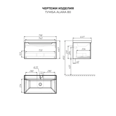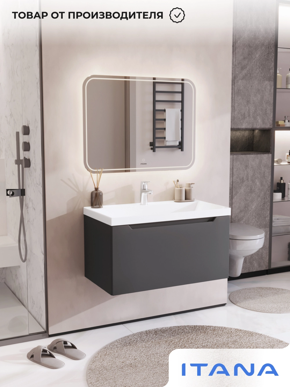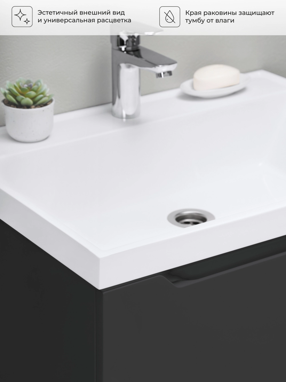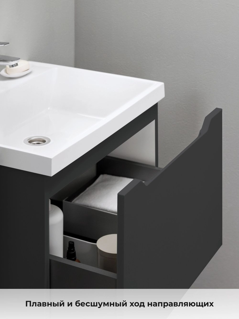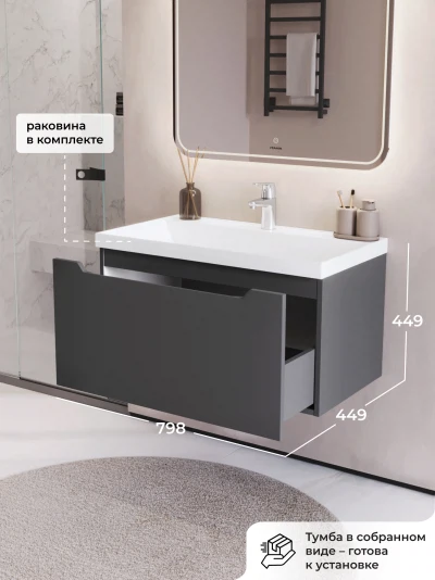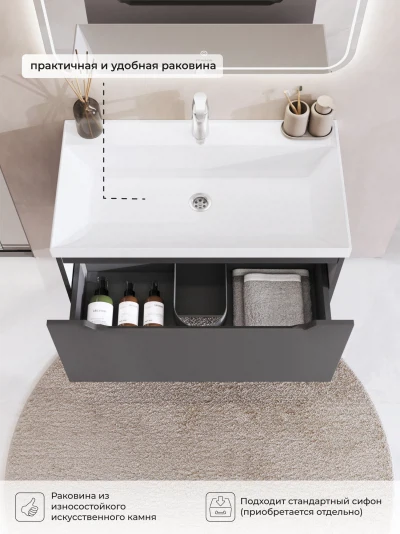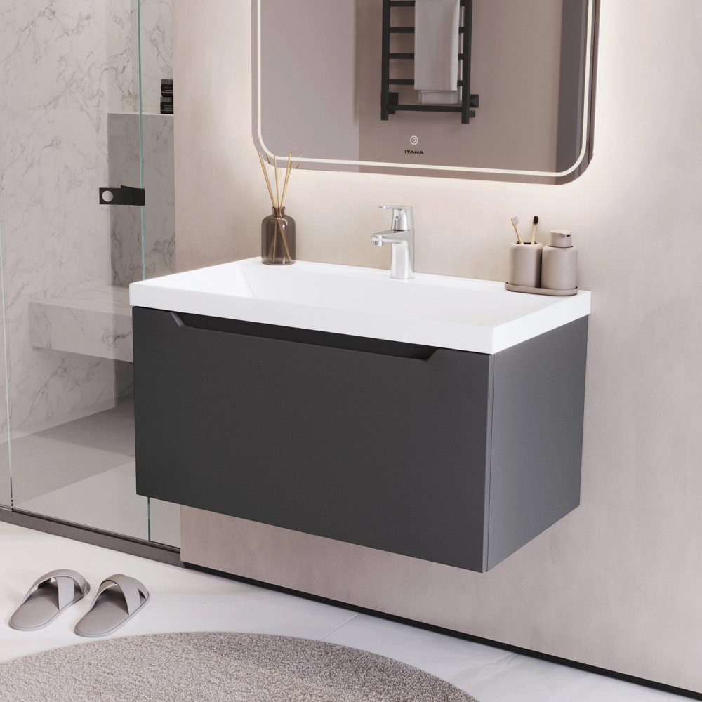 Тумба с раковиной подвесная Итана Alara 80 с выдвижным ящиком Графит