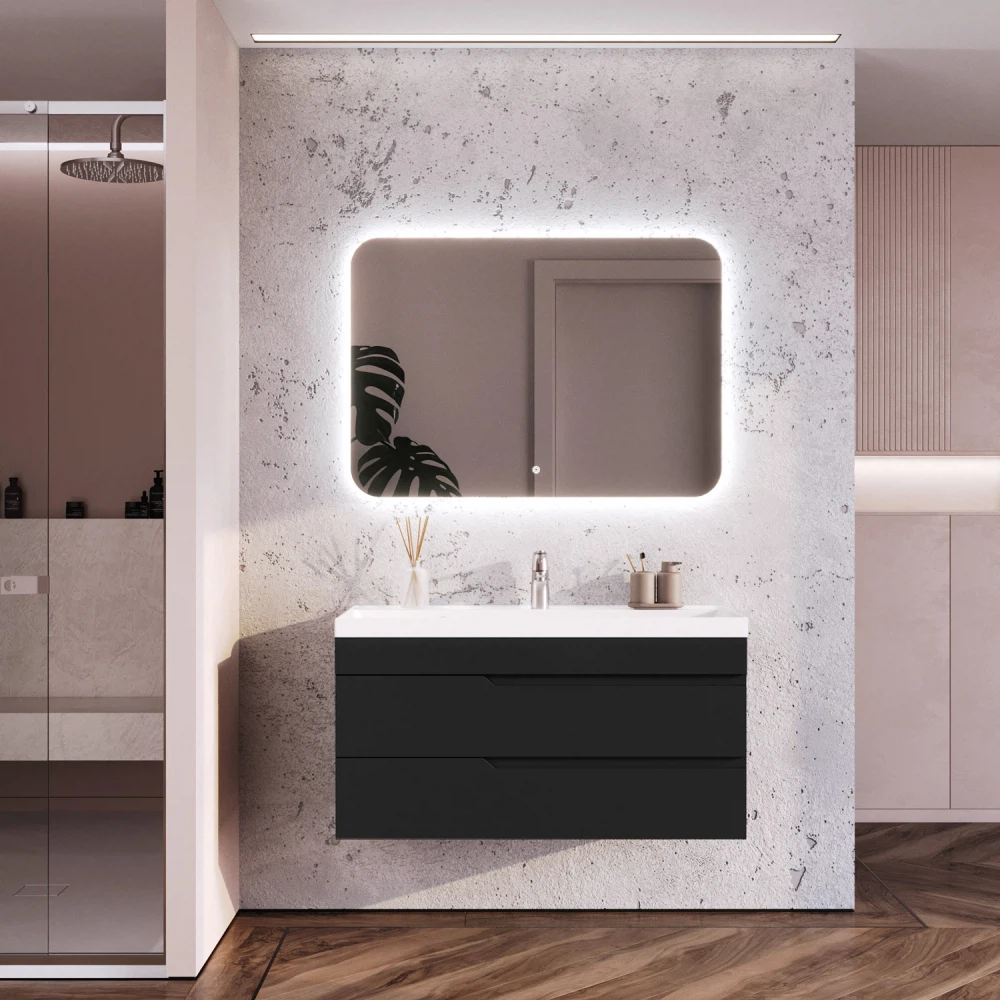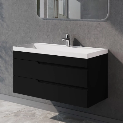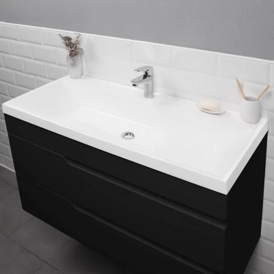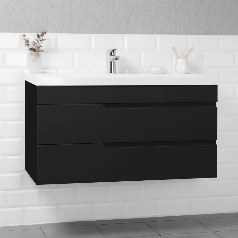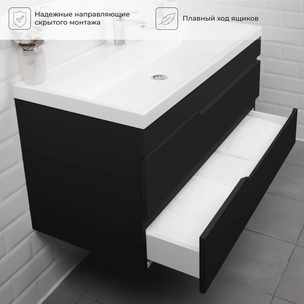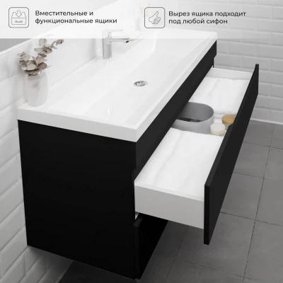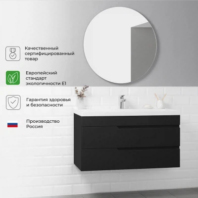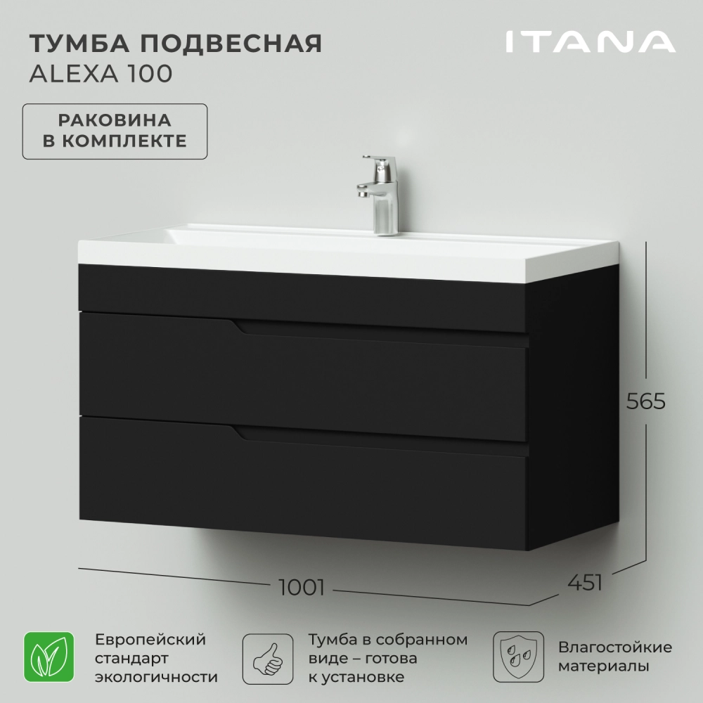 Тумба с раковиной подвесная Итана Alexa 100 с выдвижными ящиками Черный