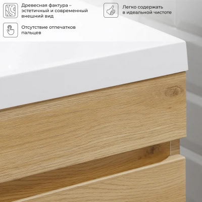 Тумба с раковиной в ванную Итана из коллекции Alexa. Тумба в ванную отличается элегантным дизайном и качественным исполнением, прекрасно сочетая функциональность и эстетическую привлекательность. Размеры подвесной тумбы с раковиной 455*250*570 - идеальный выбор для ванной комнаты или туалета. Подвесная конструкция тумбы с раковиной позволяет сэкономить место на полу и визуально расширяет пространство. Тумба с раковиной в ванную подвесная выполнена из МФД, что гарантирует долговечность эксплуатации и износостойкость. Качественная фурнитура с доводчиками обеспечивает легкое открывание и плавное закрывание. Ручки интегрированы в фасад, что исключает возможность случайного удара о фурнитуру. Тумба с раковиной с полками внутри, где можно рационально распределить и разместить все необходимые вещи для ванной комнаты. Для точного выбора тумбы рекомендуем обратиться к схеме замеров, которая находится на фото в карточке товара. Размеры изделия могут отличаться +/-1 см в связи со спецификой производства. Подвесная тумба с раковиной приходит в надежной упаковке и в собранном виде.