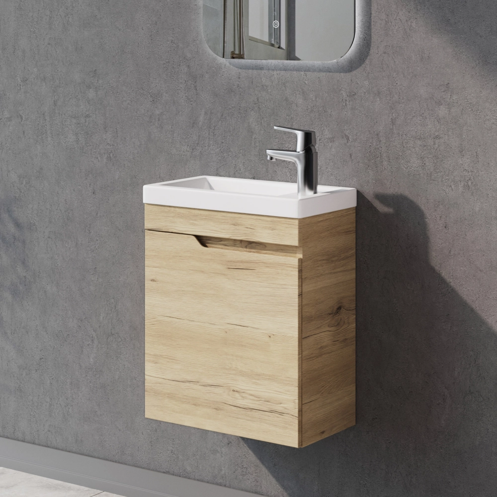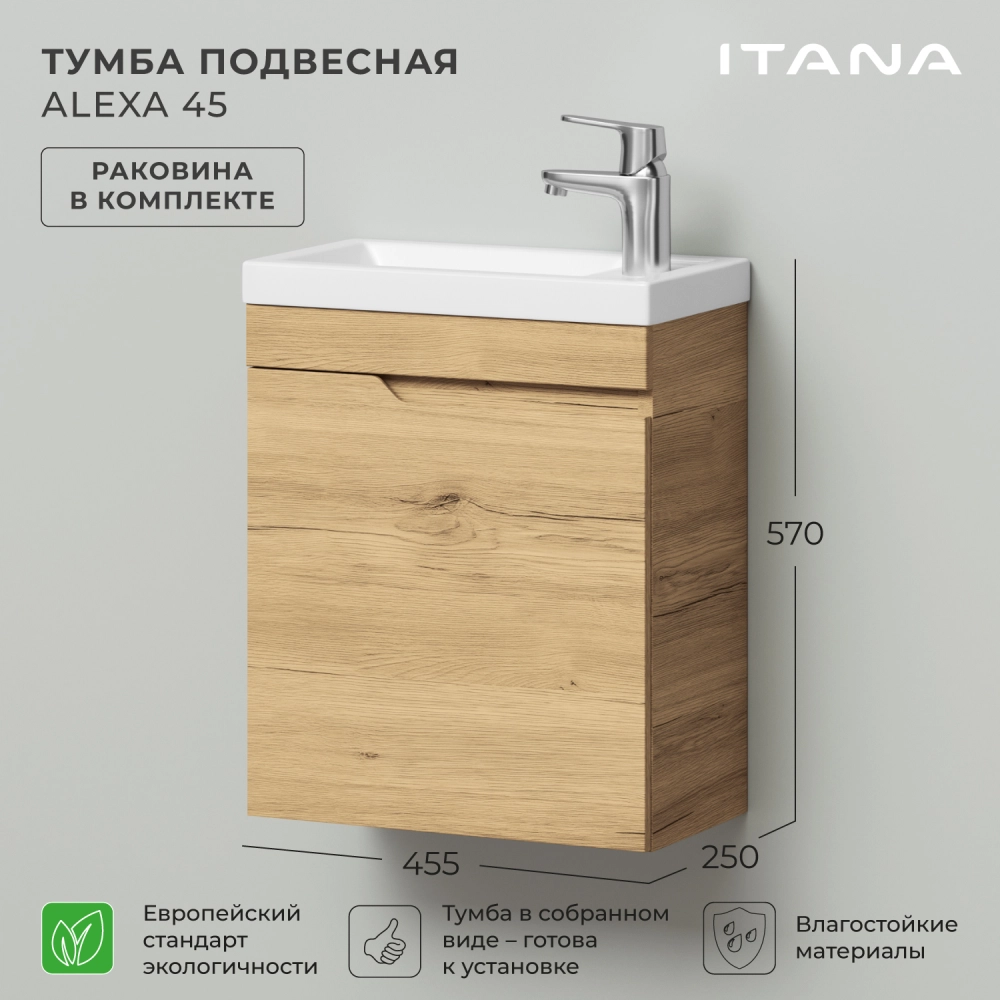 Тумба с раковиной подвесная Итана Alexa 45 с распашной дверцей левая узкая Дуб Мавелла Голд