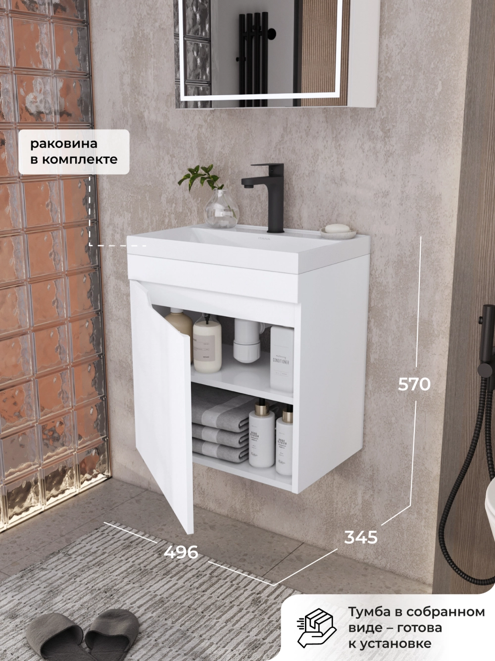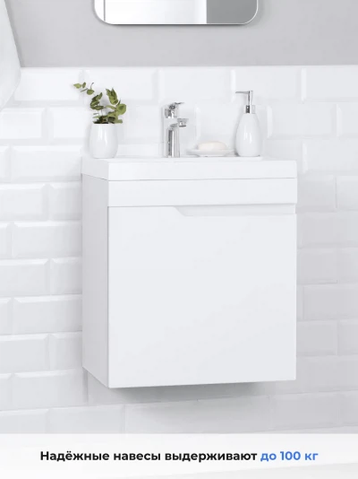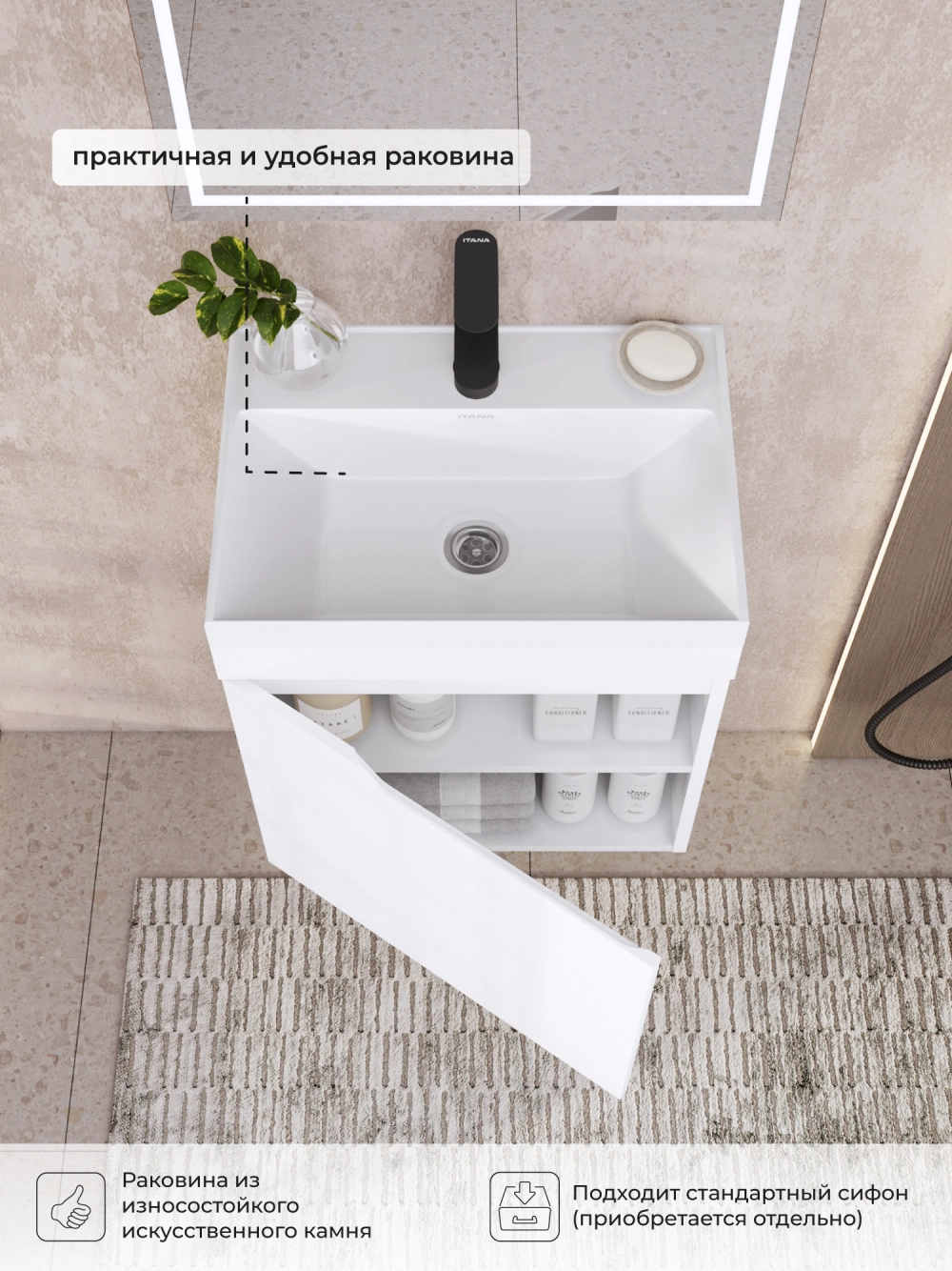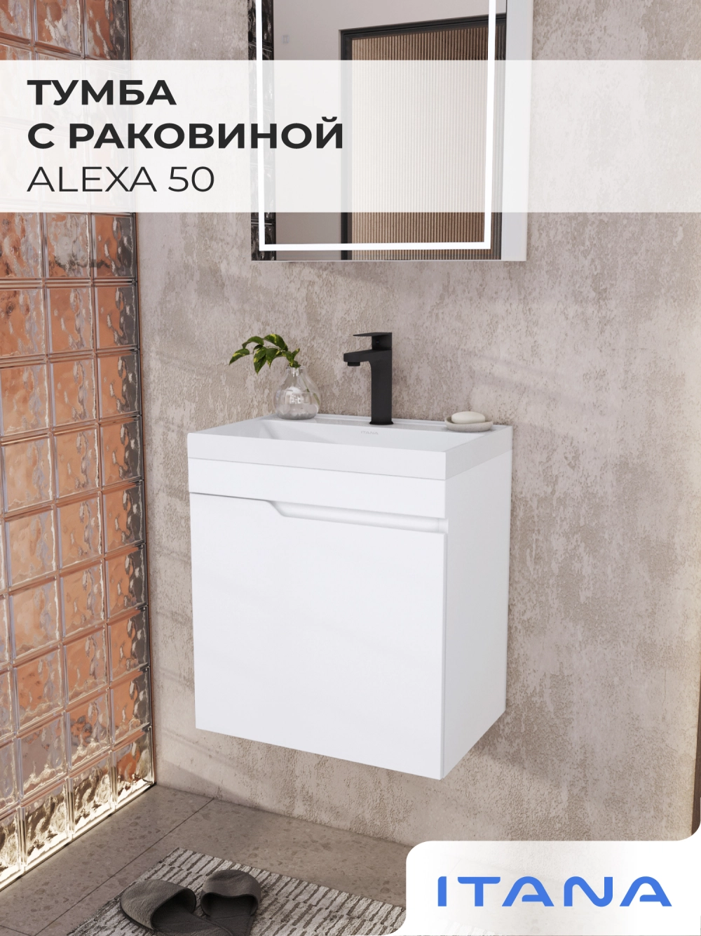 Тумба с раковиной подвесная Итана Alexa 50 с распашной дверцей левая Белый глянец
