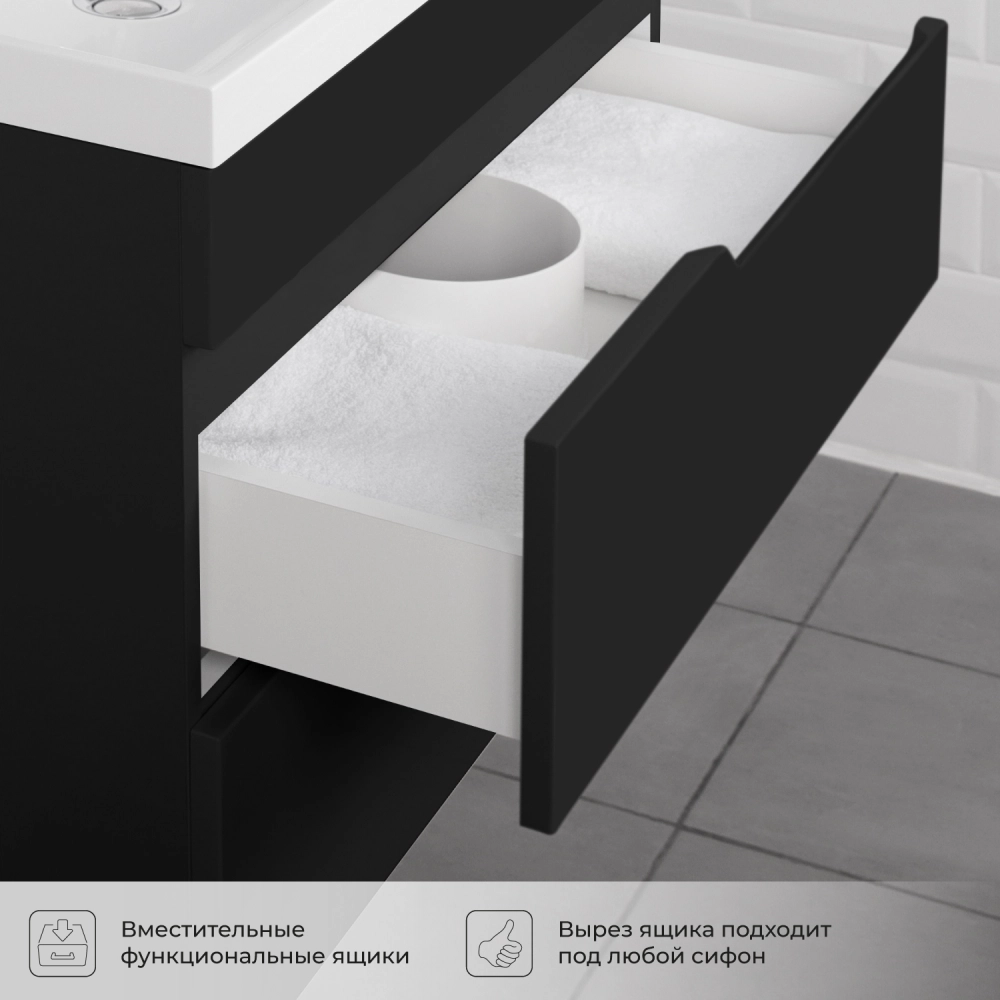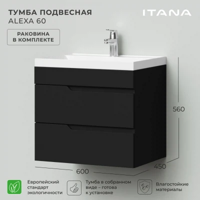 Тумба с раковиной подвесная Итана Alexa 60 с выдвижными ящиками Черный
