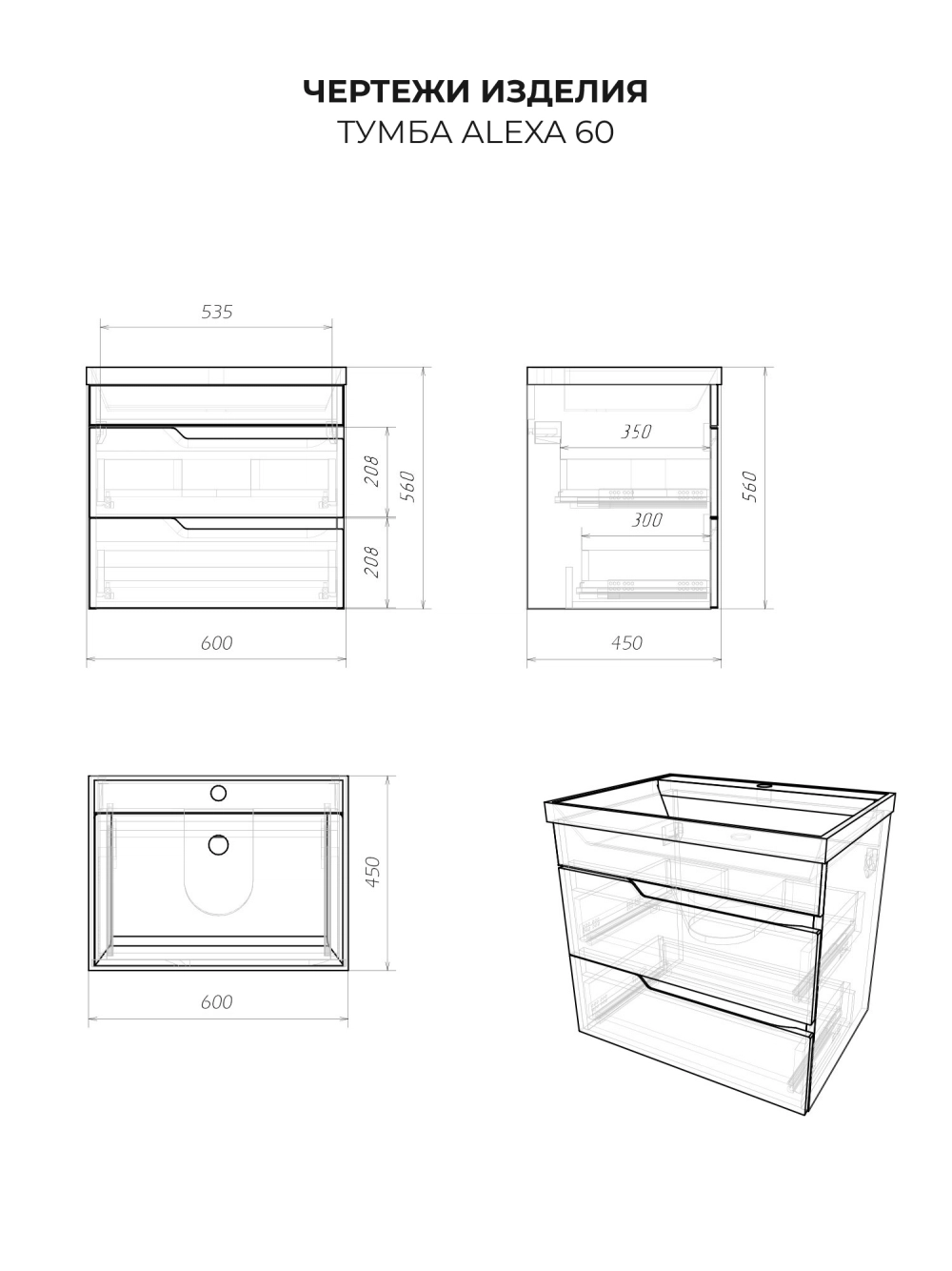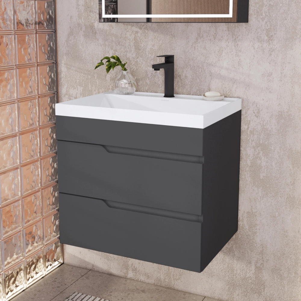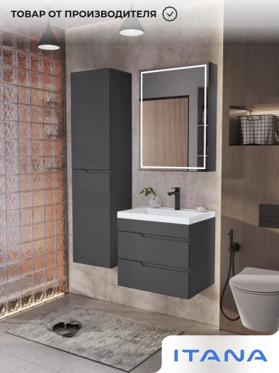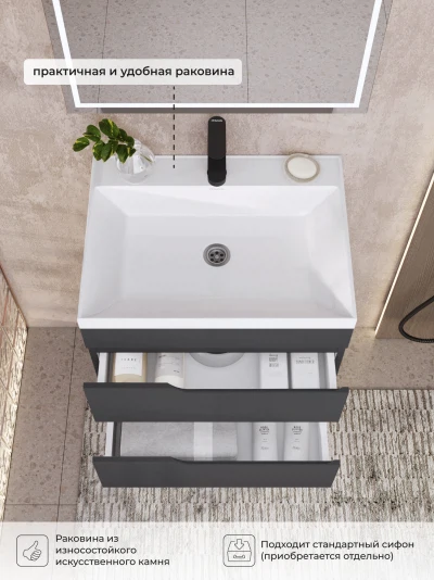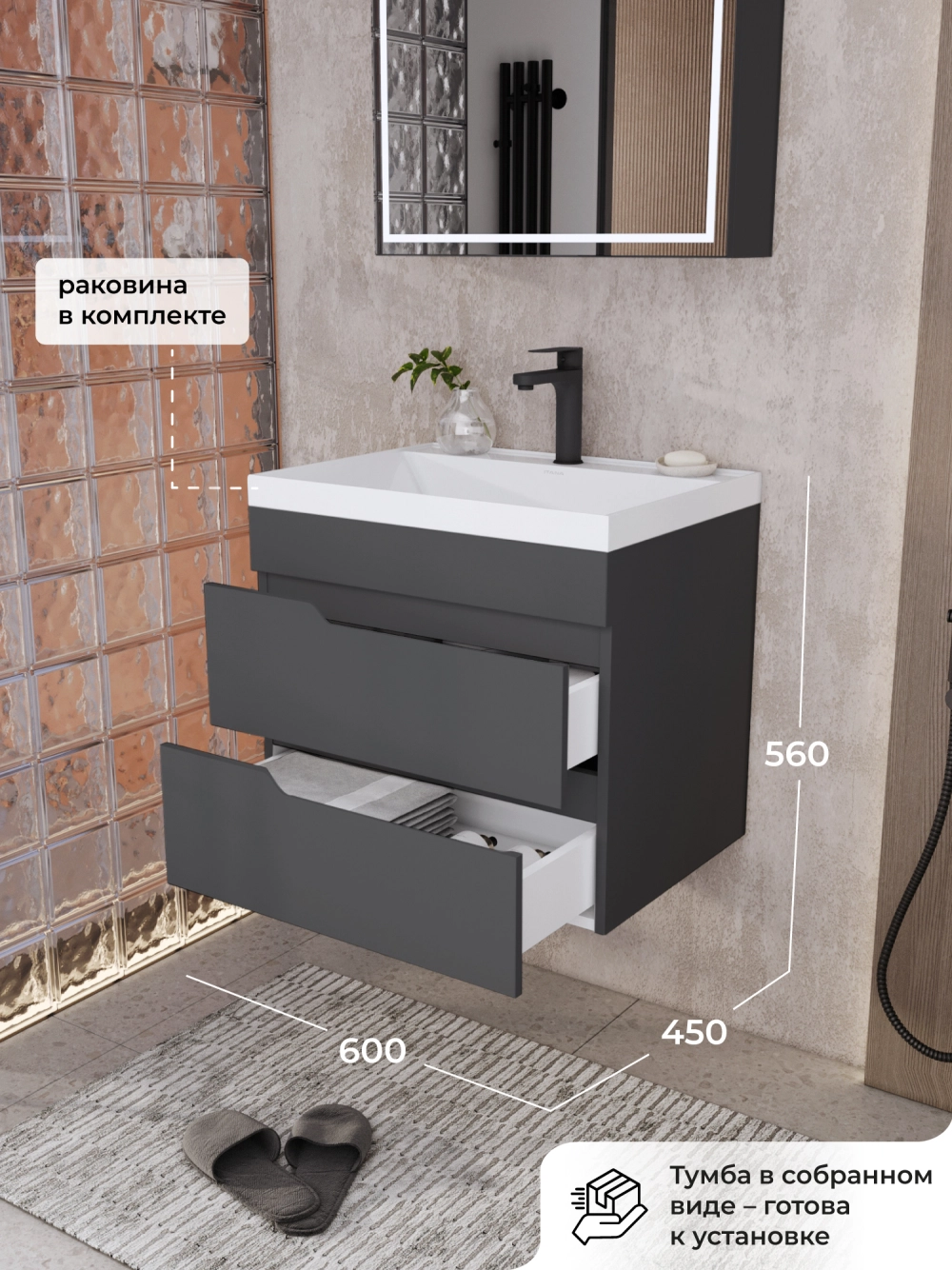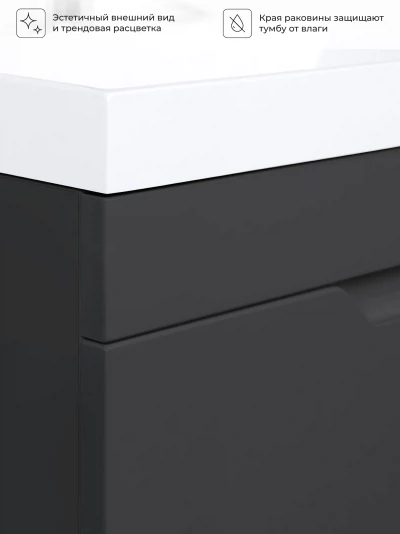 Тумба с раковиной подвесная Итана Alexa 60 с выдвижными ящиками Графит