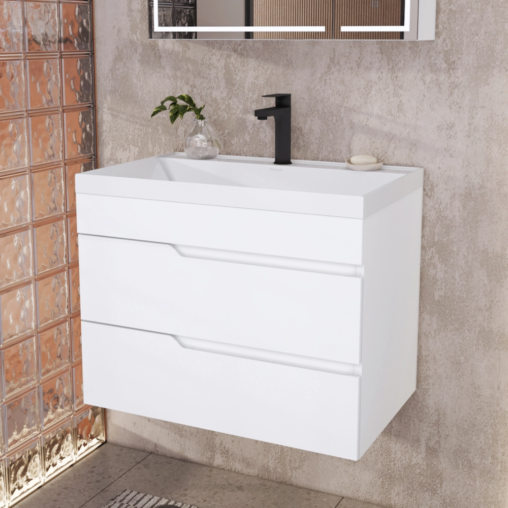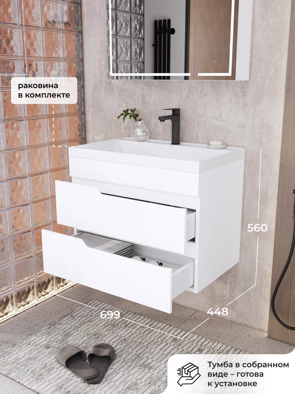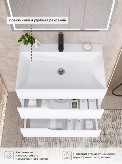 Тумба с раковиной подвесная Итана Alexa 70 с выдвижными ящиками Белый глянец