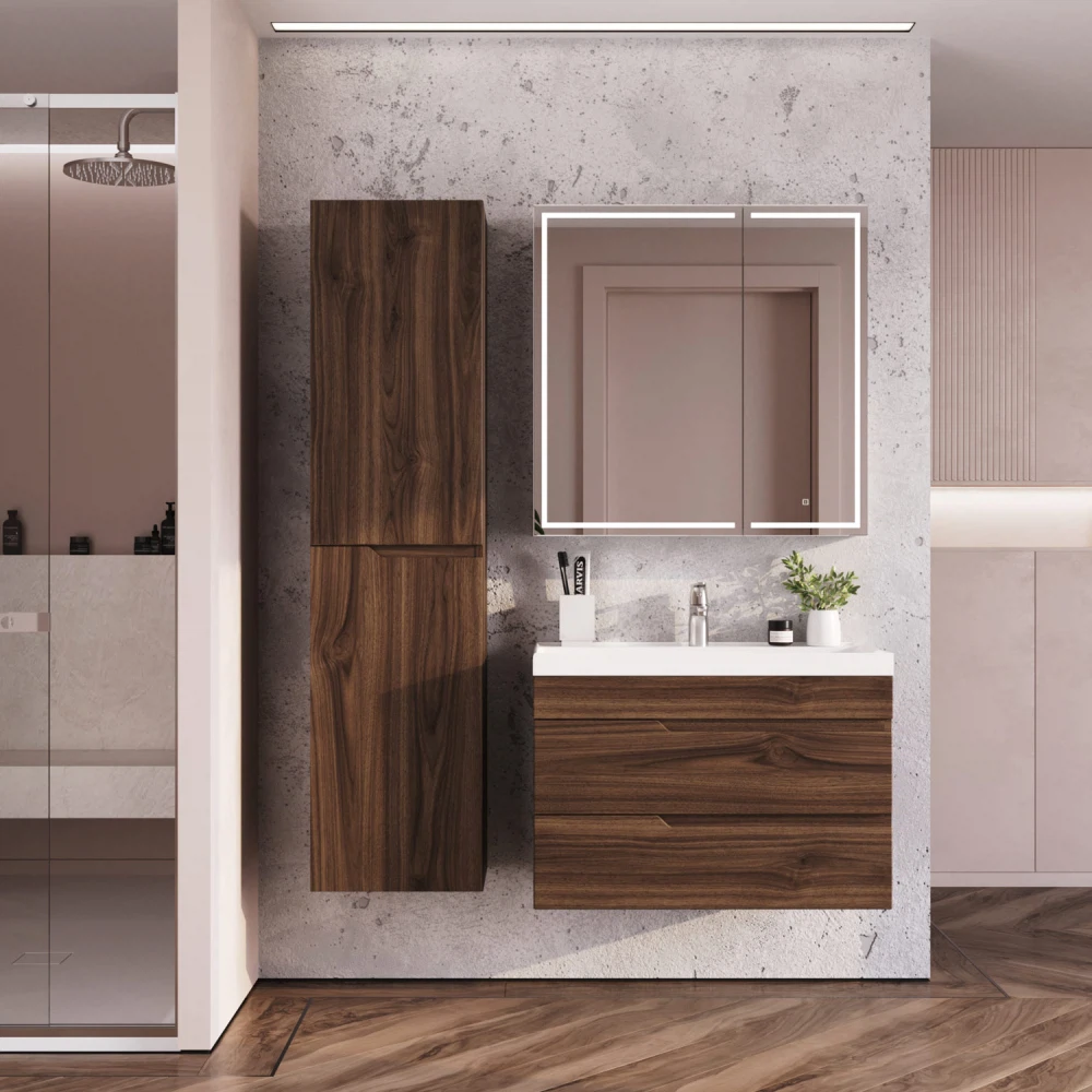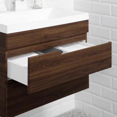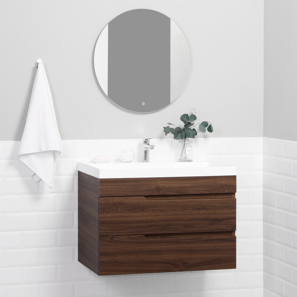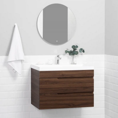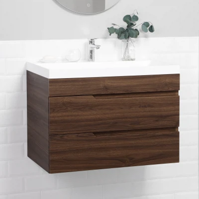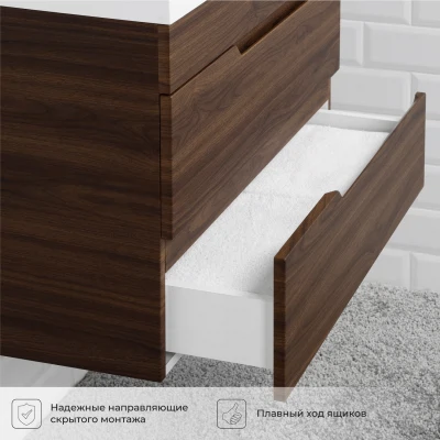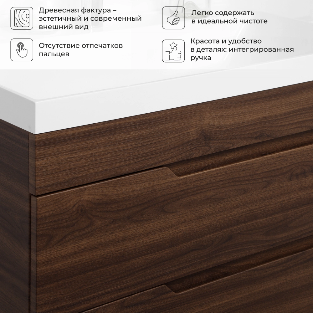 Тумба с раковиной подвесная Итана Alexa 80 с выдвижными ящиками Орех Пекан шоколад стронг