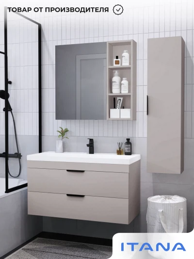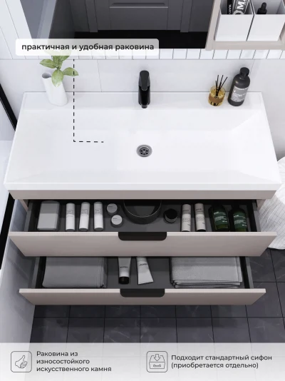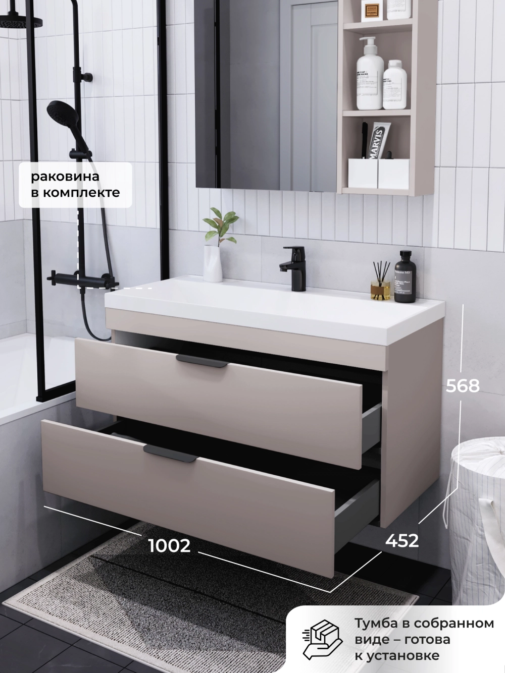 Тумба с раковиной подвесная Итана Alta 100 с выдвижными ящиками под умывальник Clarissa 100 Кашемир серый