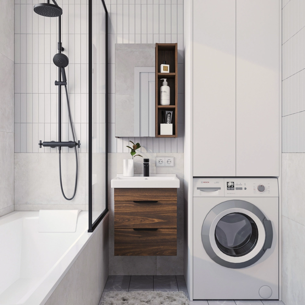 Отличная, компактная раковина и не большая тумба, для маленькой ванны самое то!
