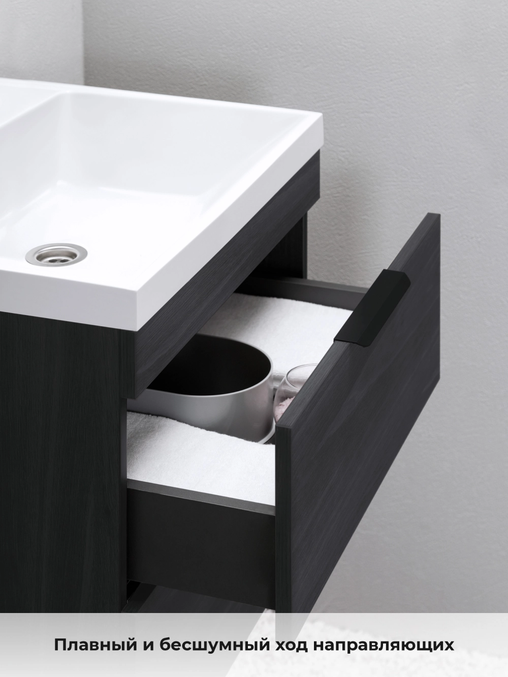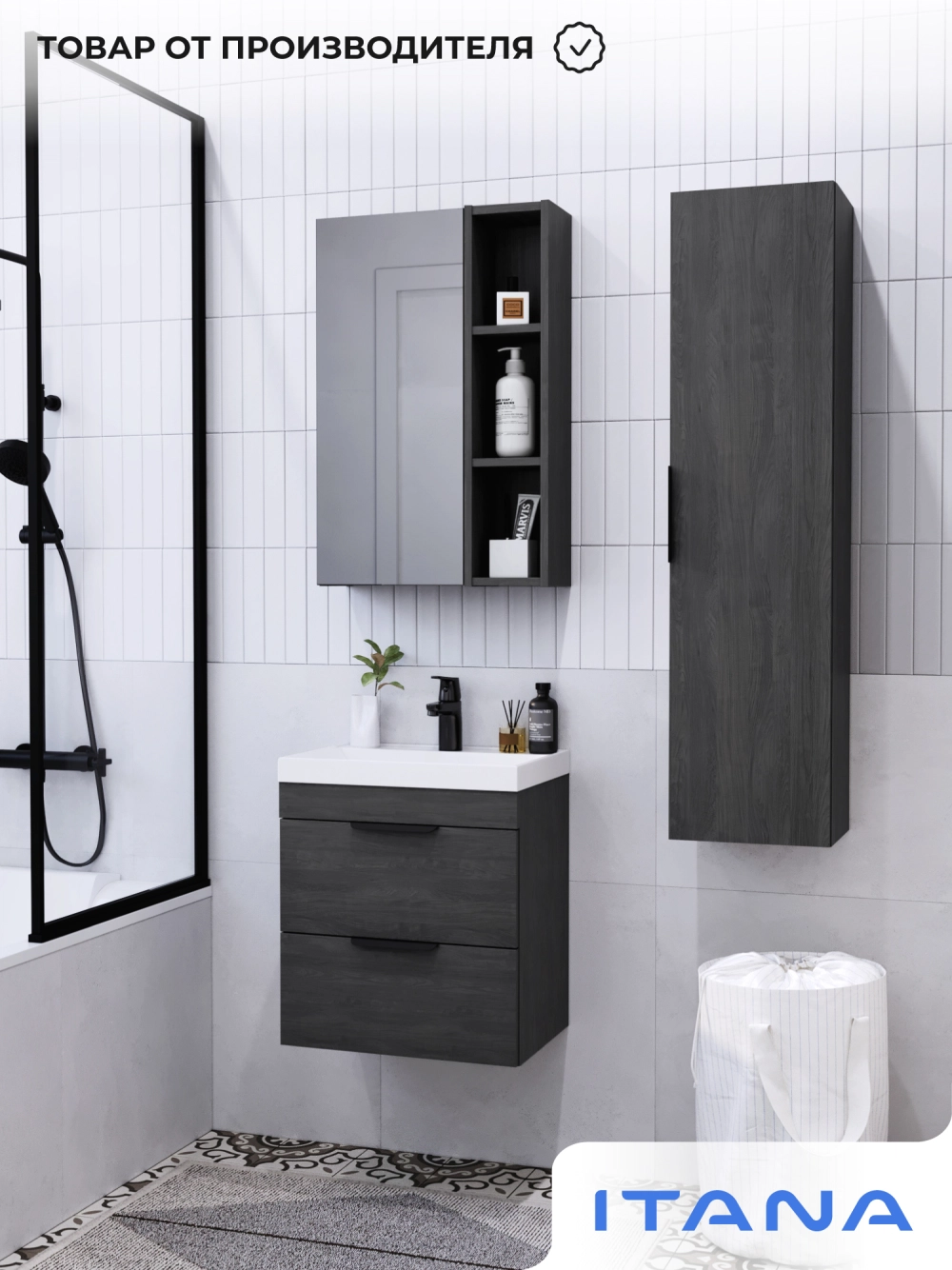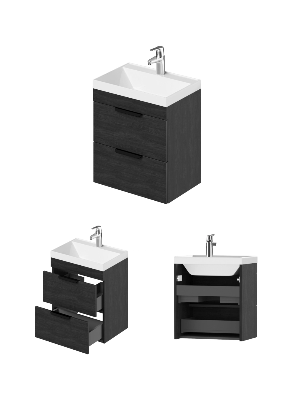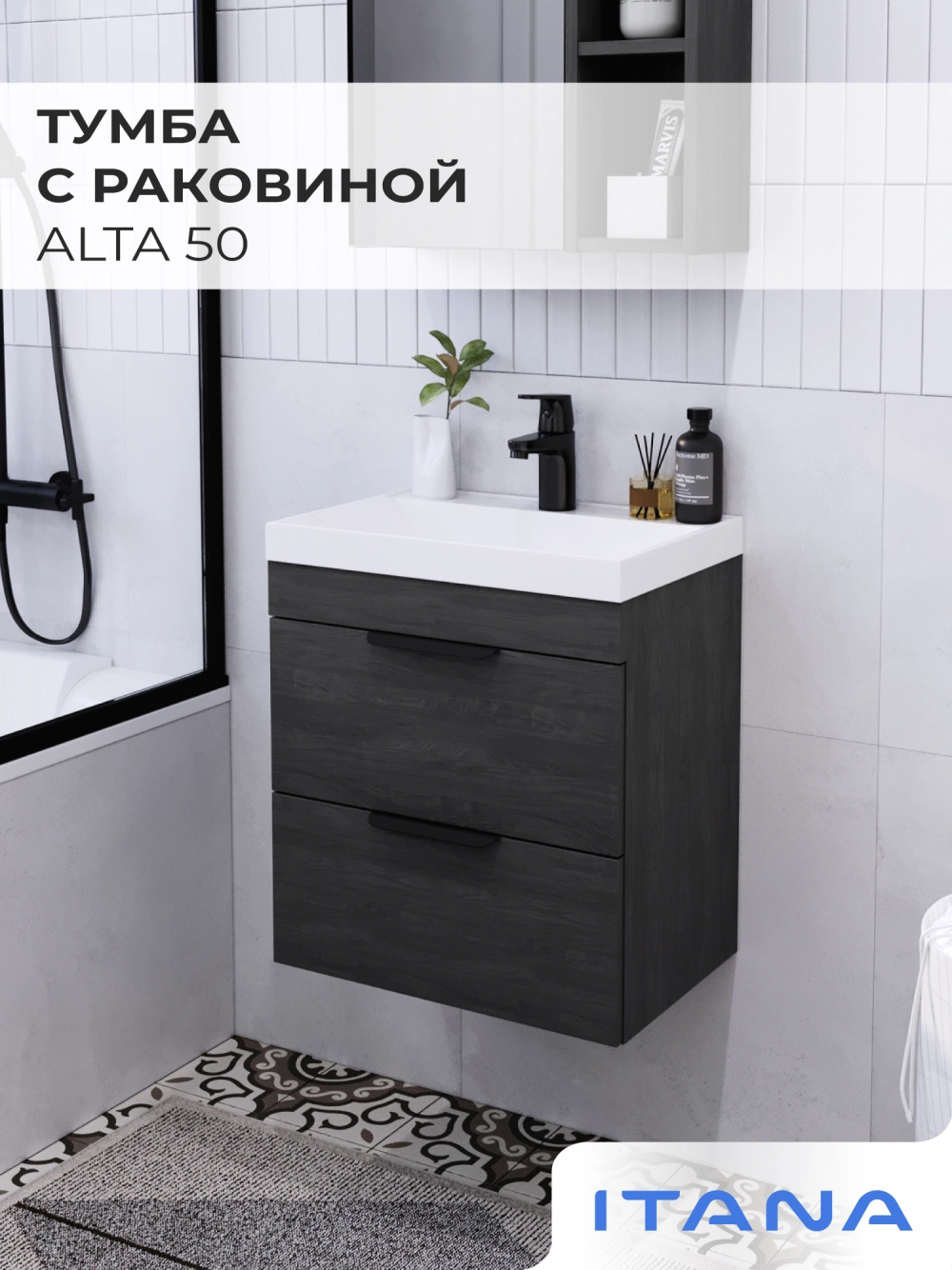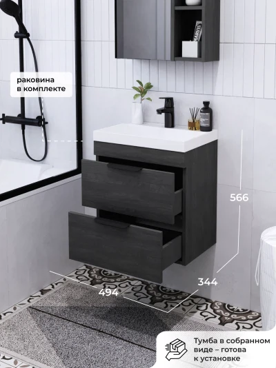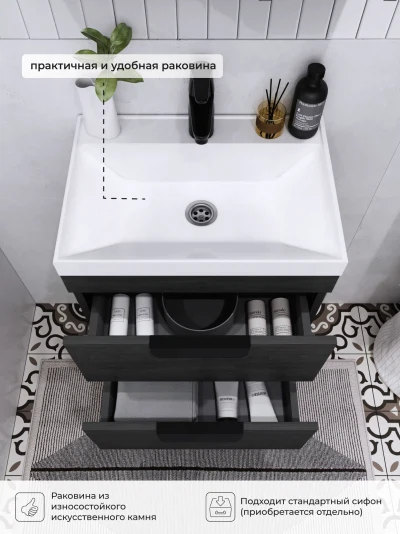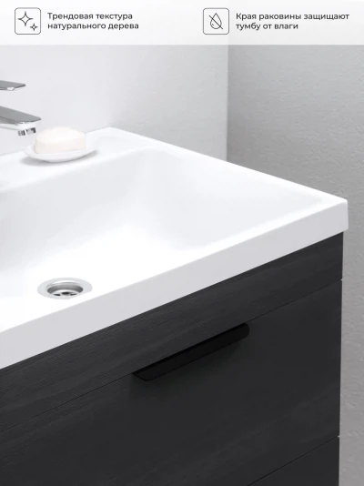 Тумба с раковиной подвесная Итана Alta 50 с выдвижными ящиками с умывальником Clarissa 50 Морское дерево Карбон