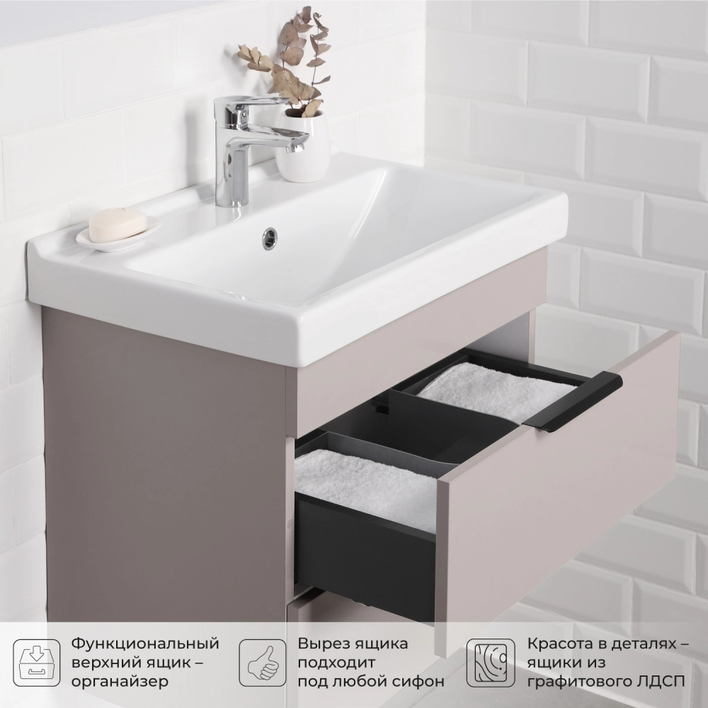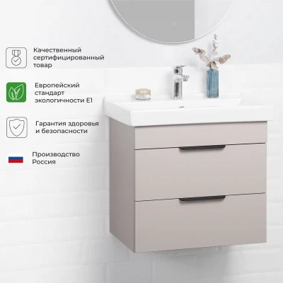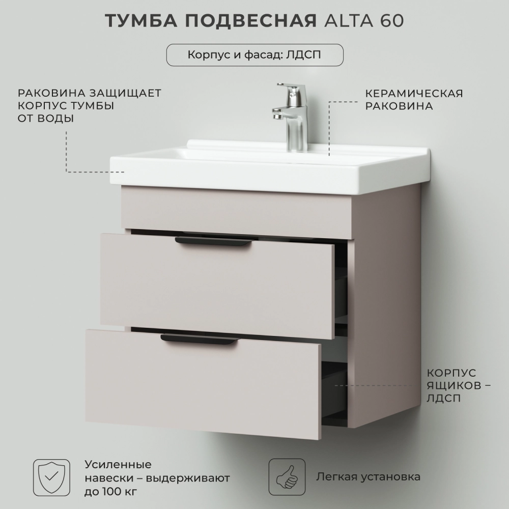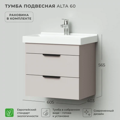 Тумба с раковиной подвесная Итана Alta 60 с выдвижными ящиками Кашемир