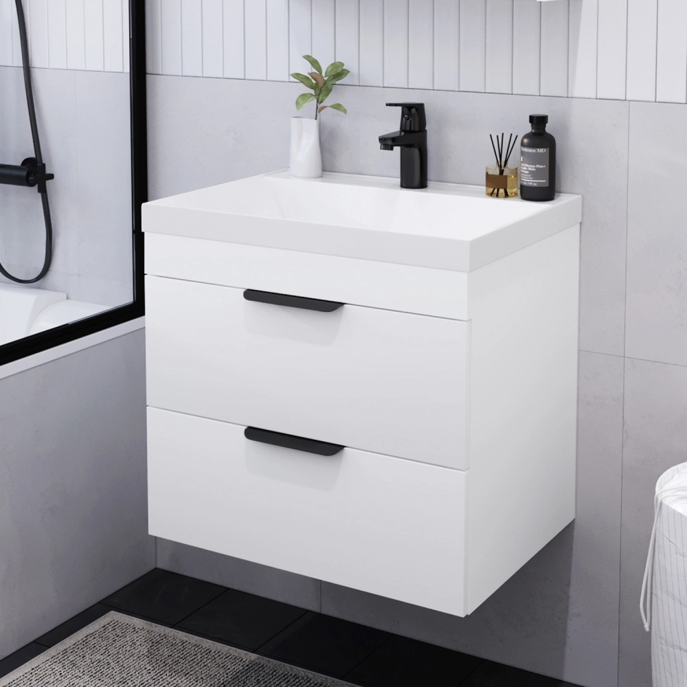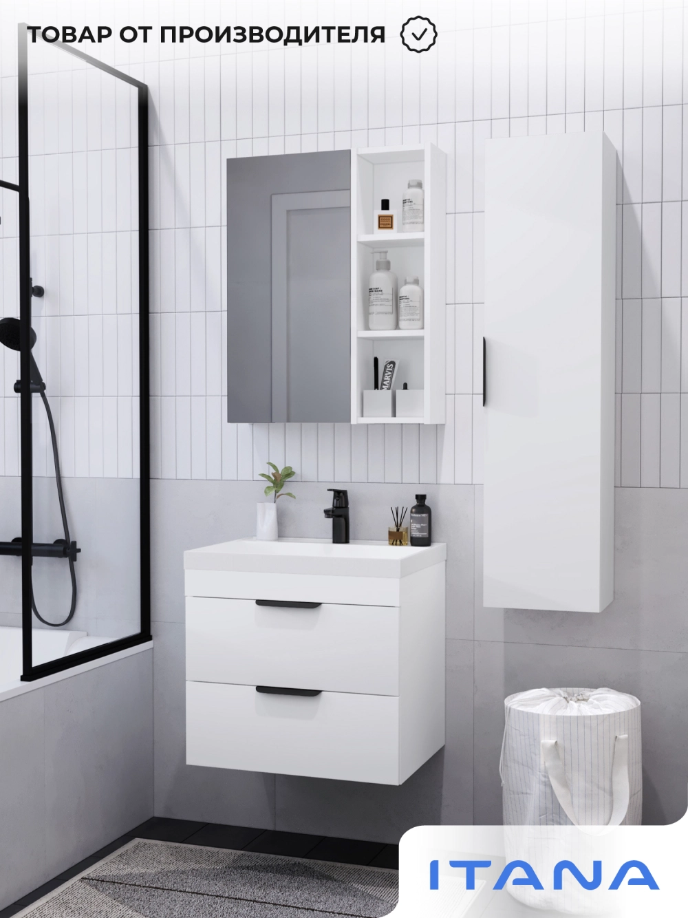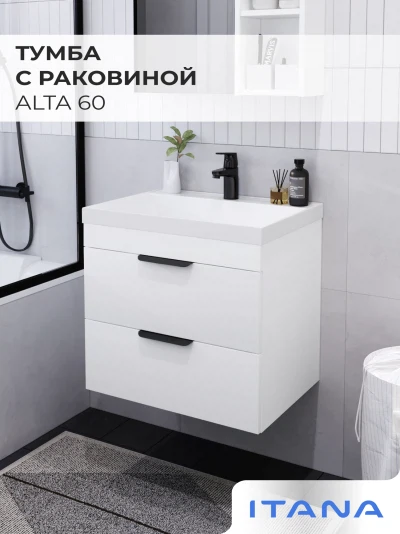 Тумба с раковиной подвесная Итана Alta 60 с выдвижными ящиками с умывальником Clarissa 60 Белый Скандинавский