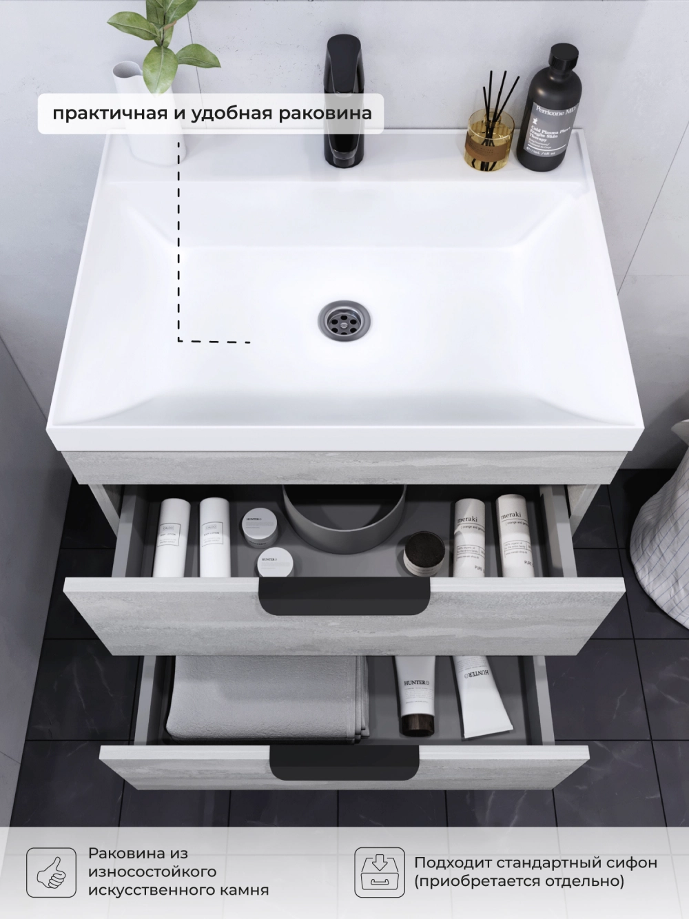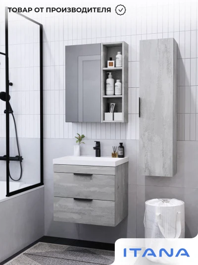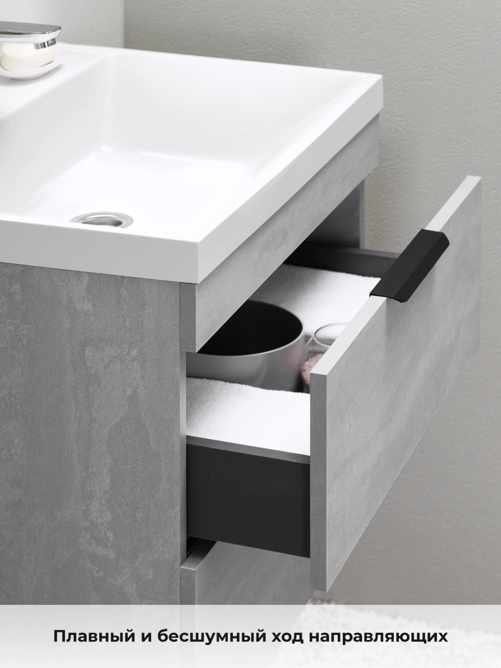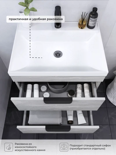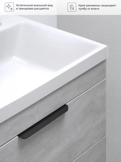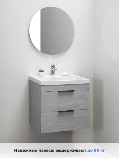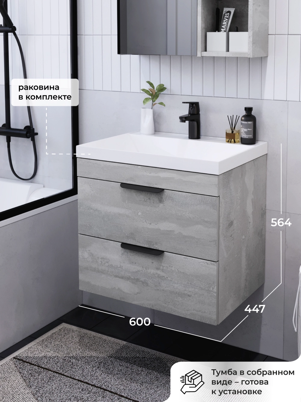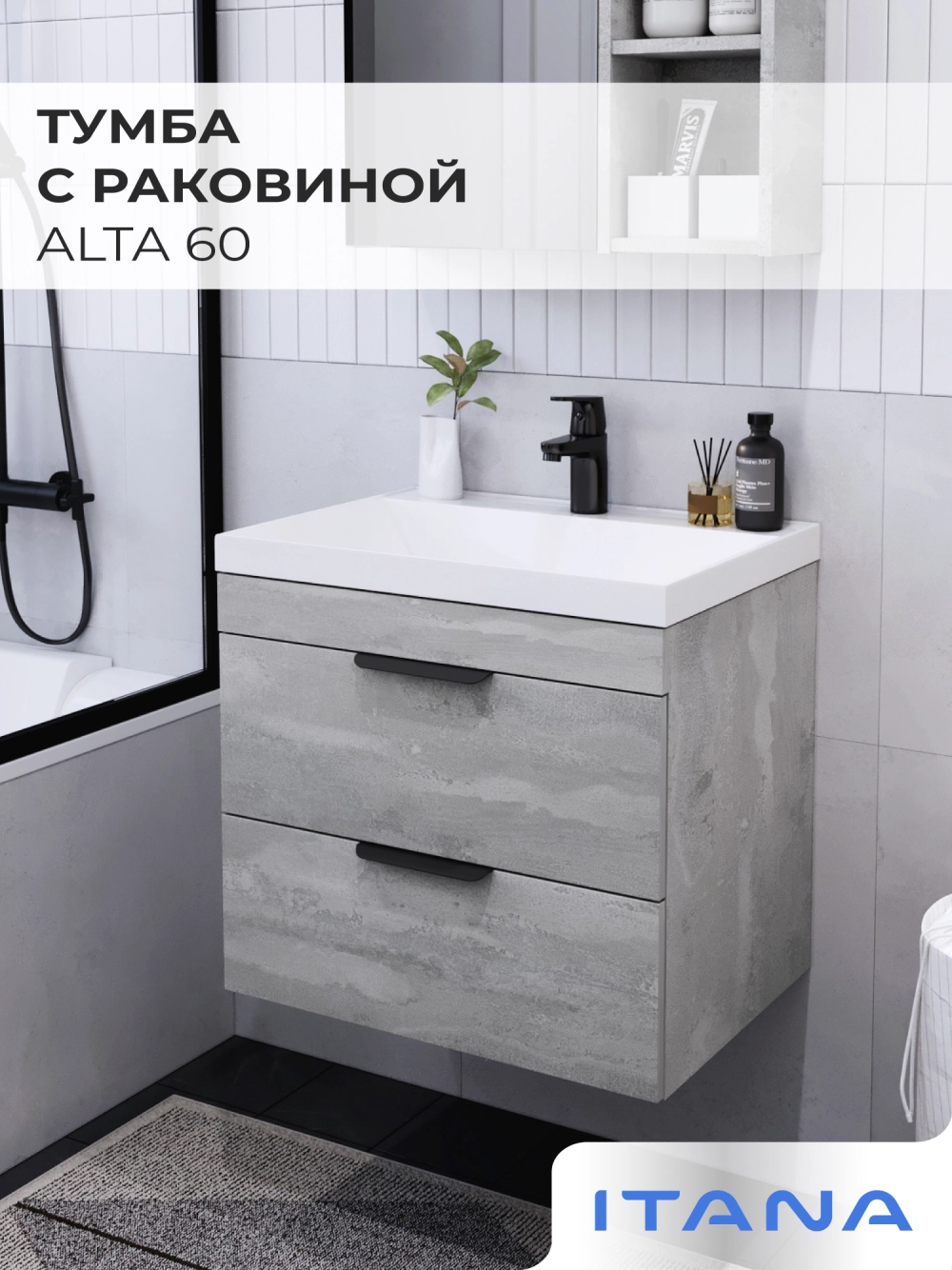 Тумба с раковиной подвесная Итана Alta 60 с выдвижными ящиками с умывальником Clarissa 60 Бетонный Камень