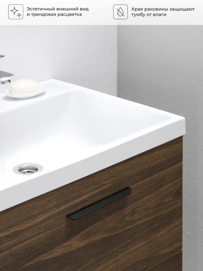 Тумба с раковиной подвесная Итана Alta 60 с выдвижными ящиками с умывальником Clarissa 60 Дуб Бурбон