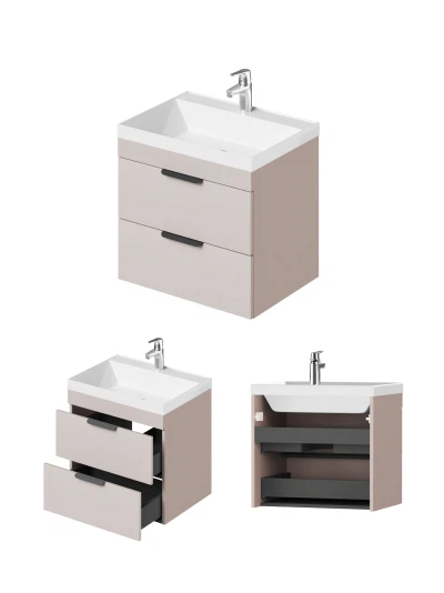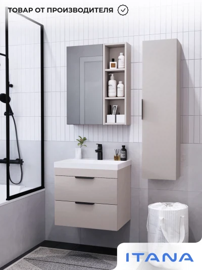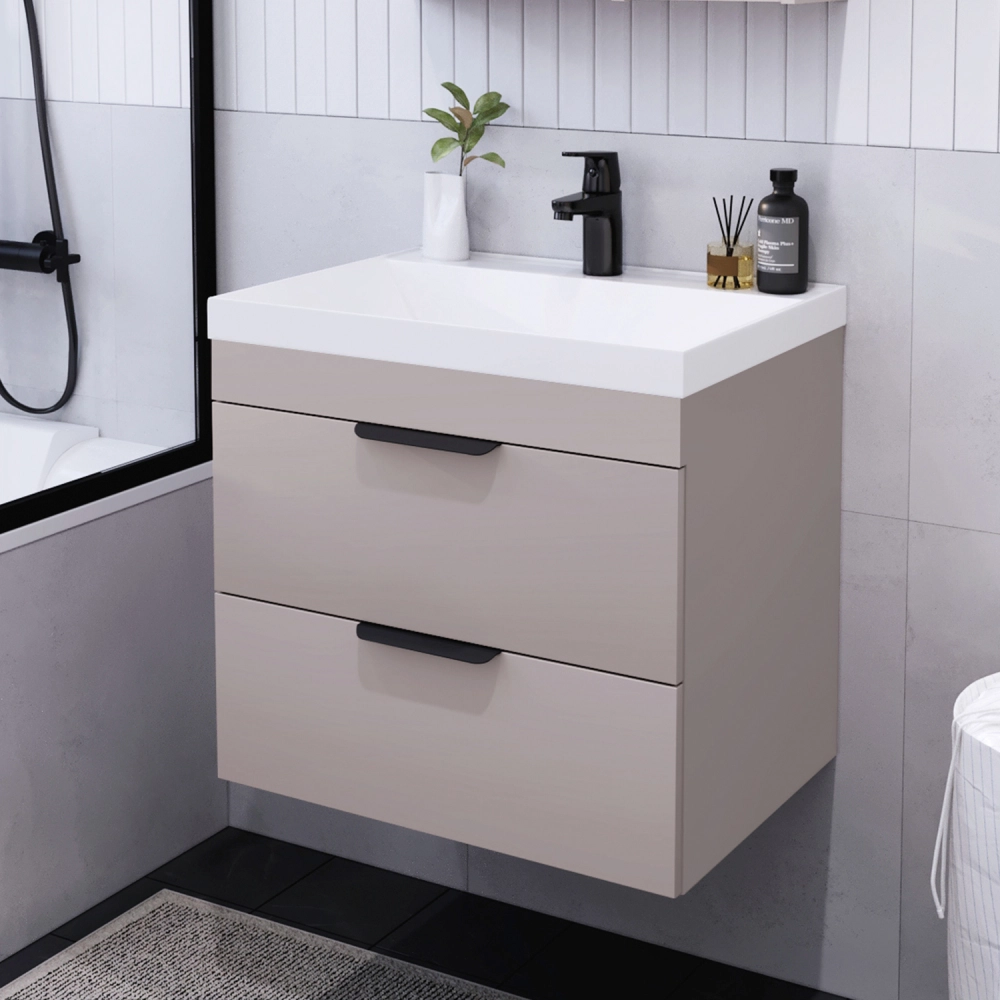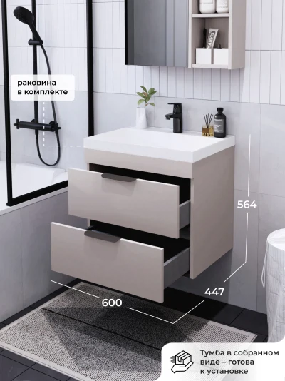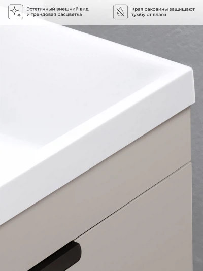 Тумба с раковиной подвесная Итана Alta 60 с выдвижными ящиками с умывальником Clarissa 60 Кашемир серый