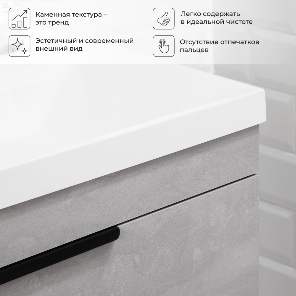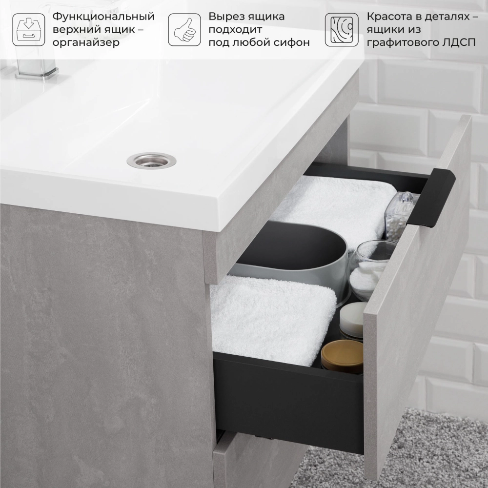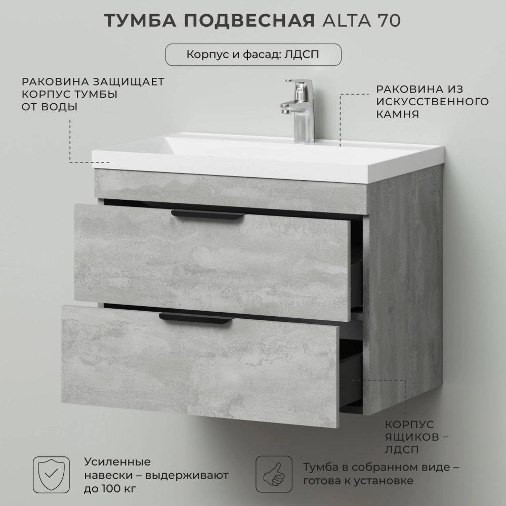 Тумба с раковиной подвесная Итана Alta 70 с выдвижными ящиками под умывальник Clarissa 70 Бетонный Камень