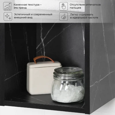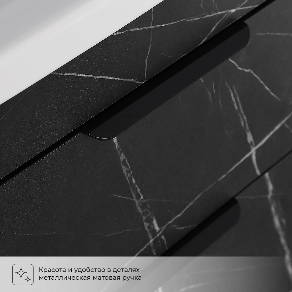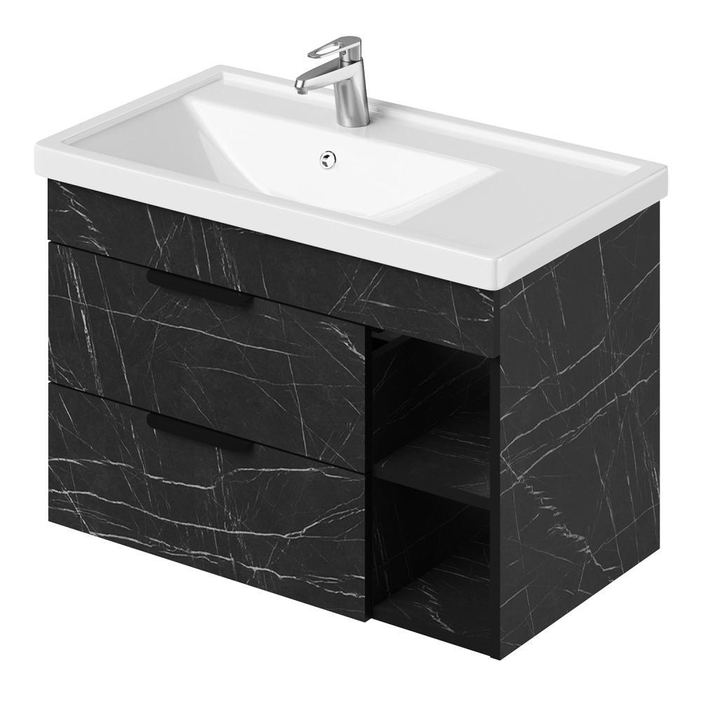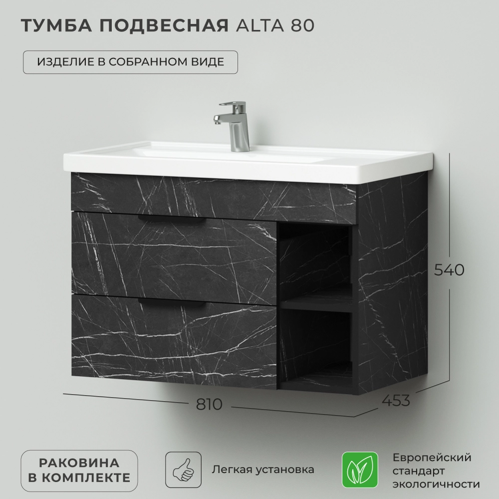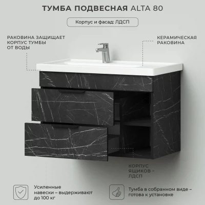 Тумба с раковиной подвесная Итана Alta 80 левая с выдвижными ящиками Камень Пьетра Гриджиа черный