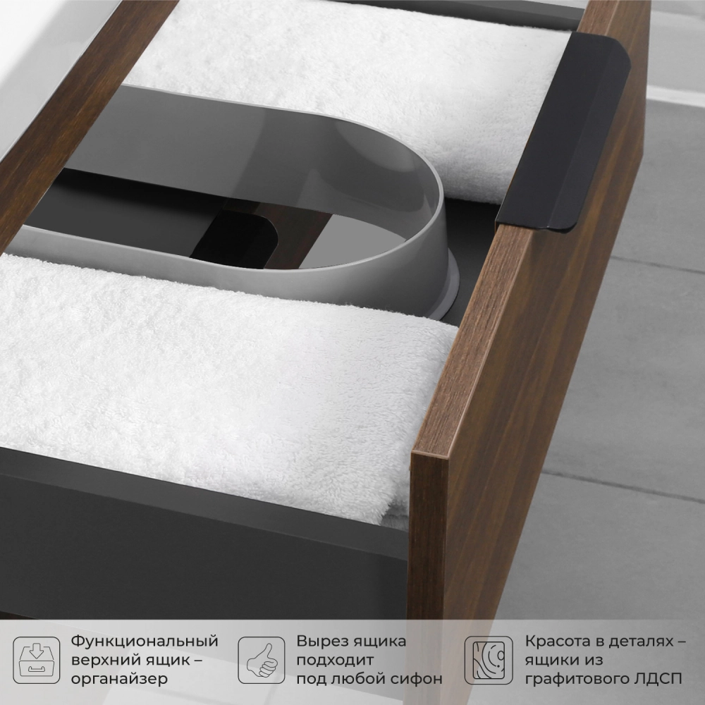Тумба с раковиной подвесная Итана Alta 80 с выдвижными ящиками под умывальник Clarissa 80 Дуб бурбон