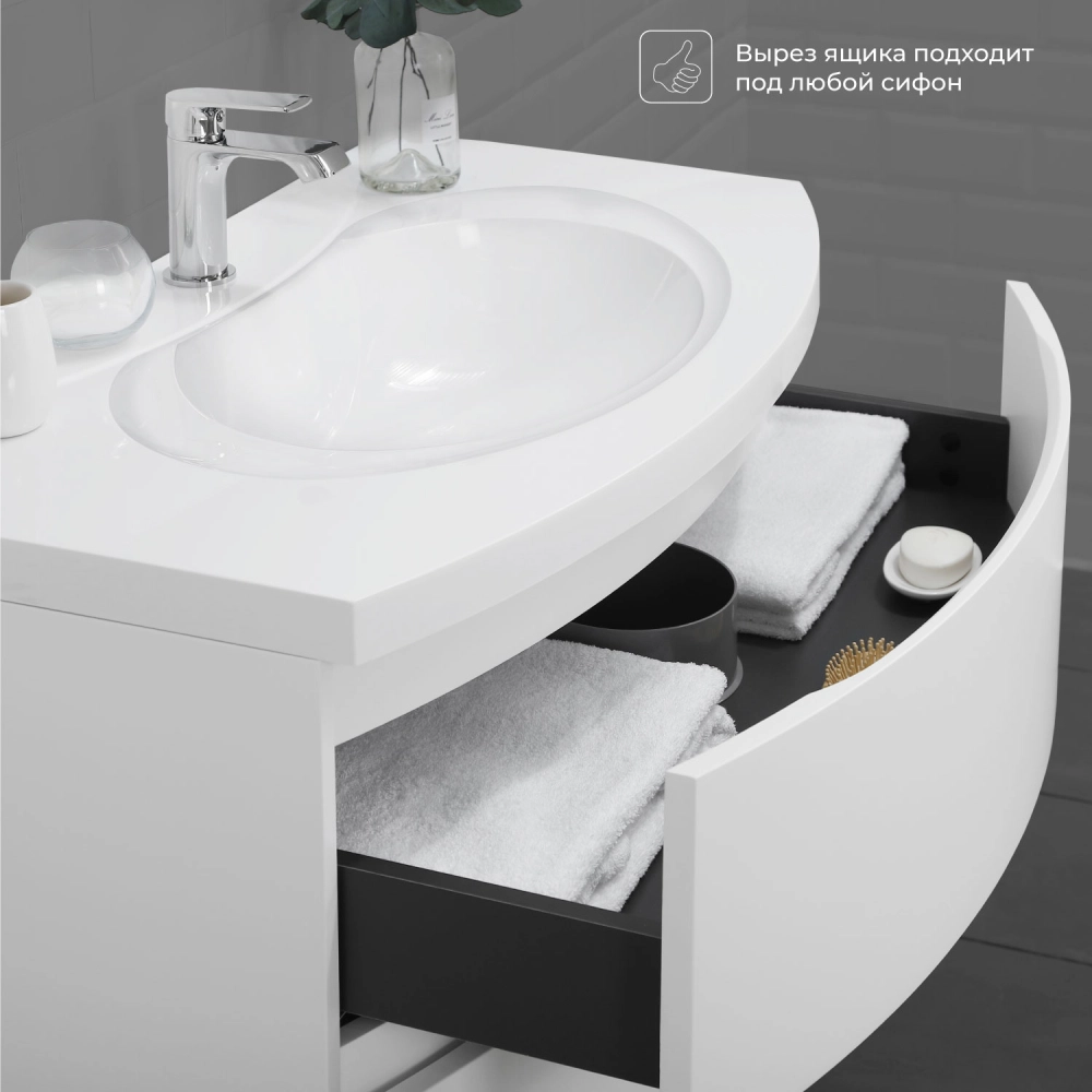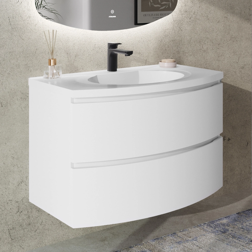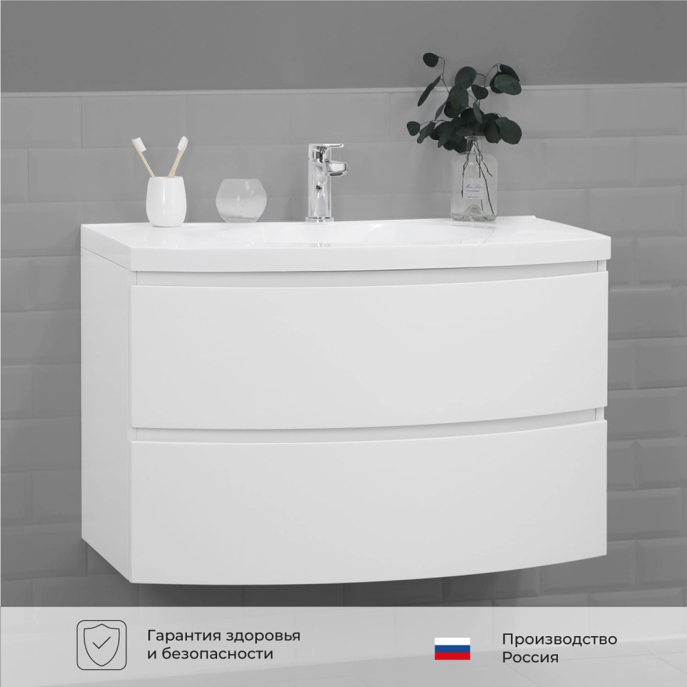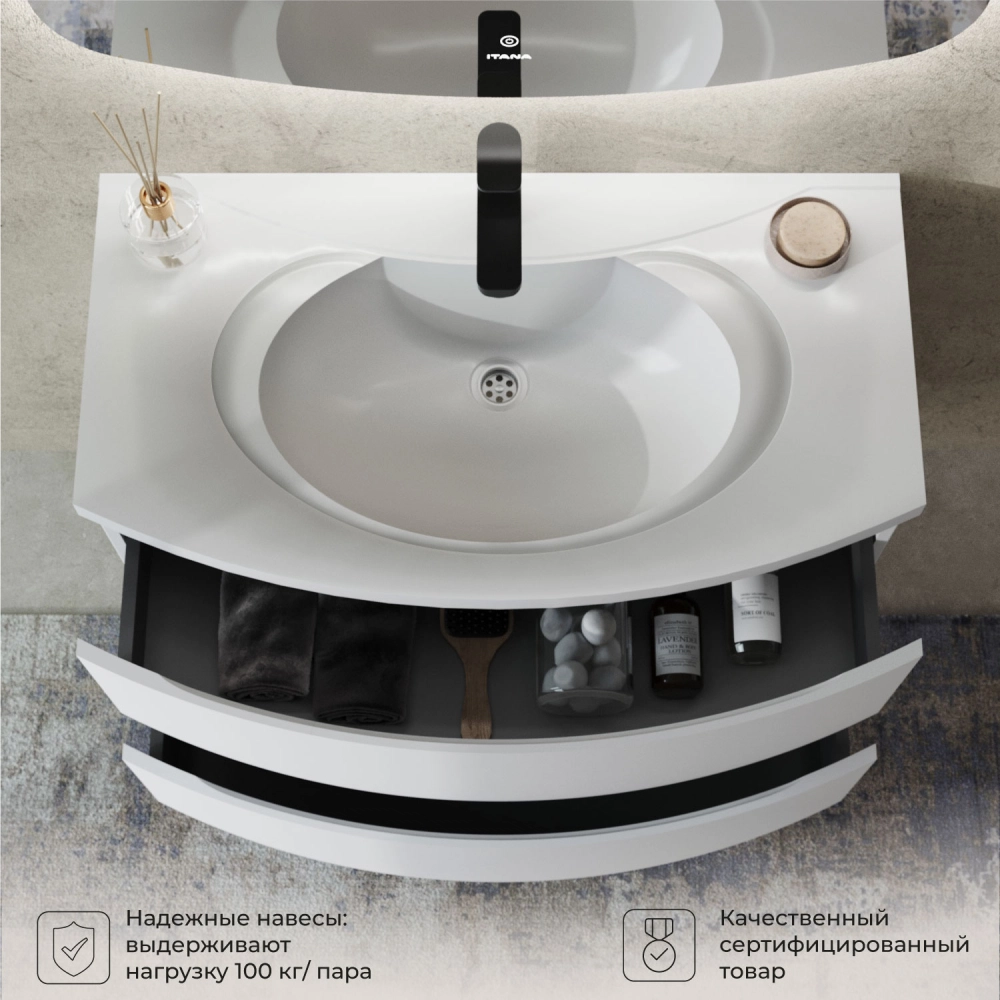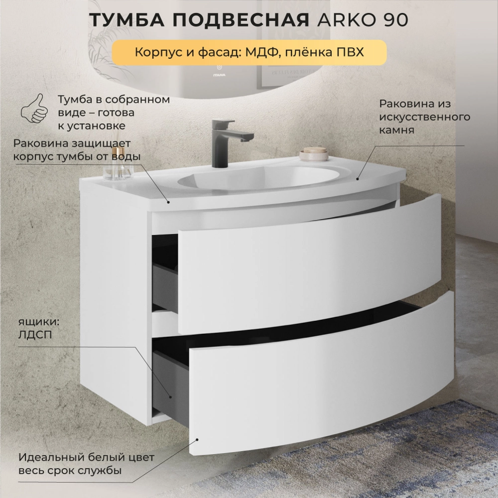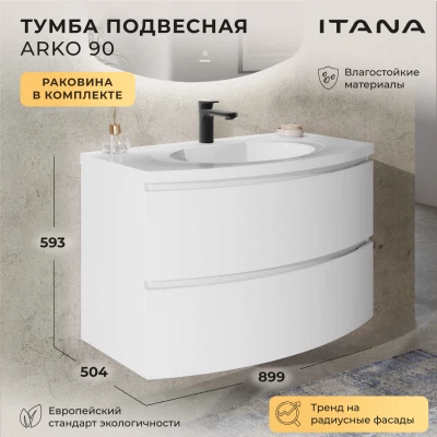 Тумба с раковиной подвесная Итана Arko 90 с радиусными фасадами Бланж